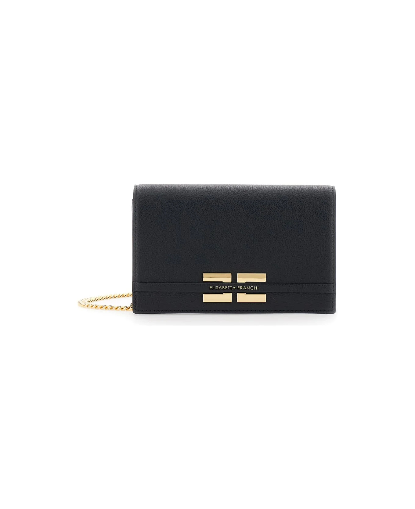Black Clutch Bag With Logo Lettering On The Front And Chain Shoulder Strap In Eco Leather Woman