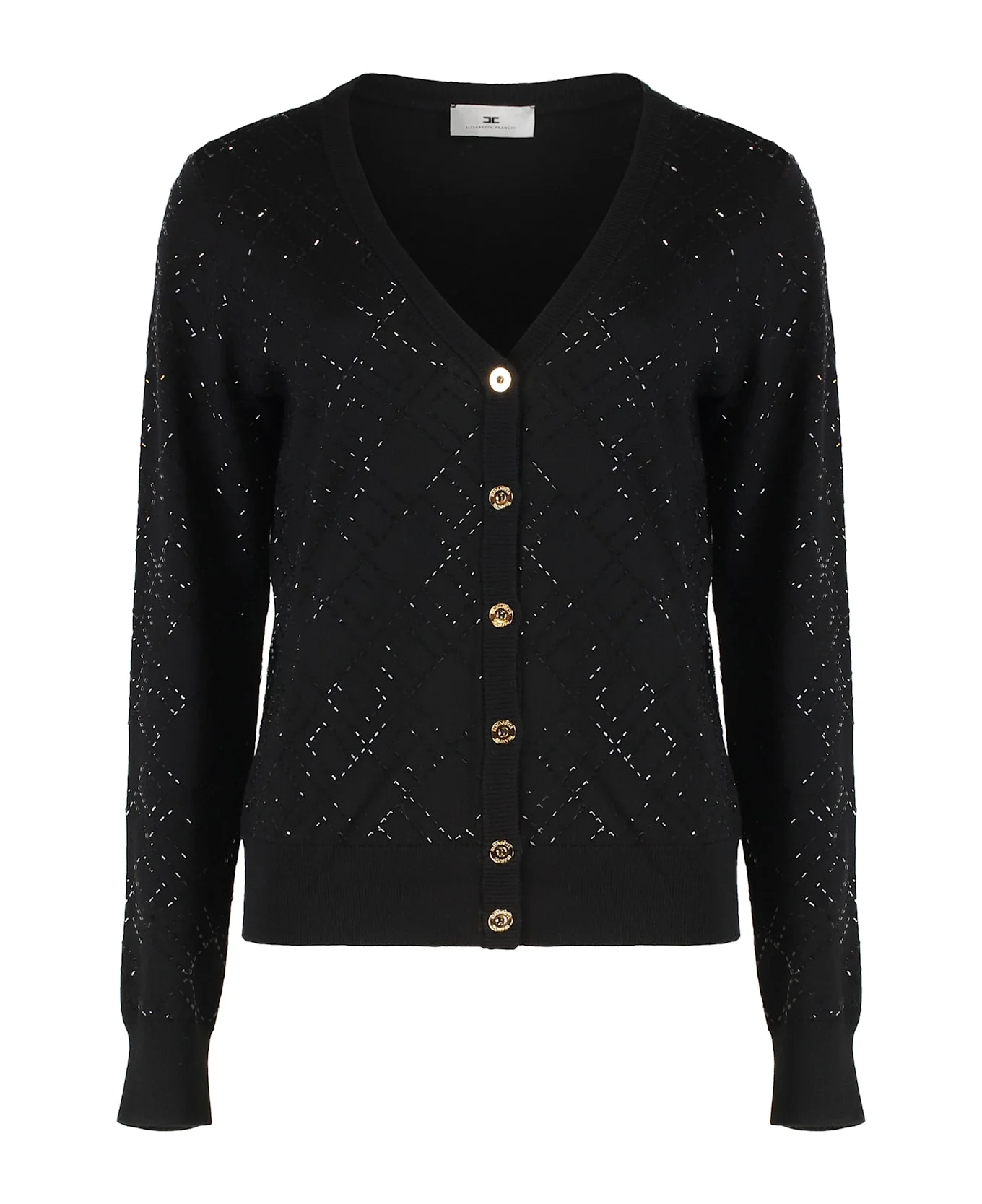 Long-sleeved cardigan in an elegant black color. made from a soft and comfortable fabric, it features a v-neckline and a front button closure. 100% wool, 100% glass Composition: 100% % Wool, 100% % Glass Made in: Italy Color: Nero Nero Model number: MK26B56E2188