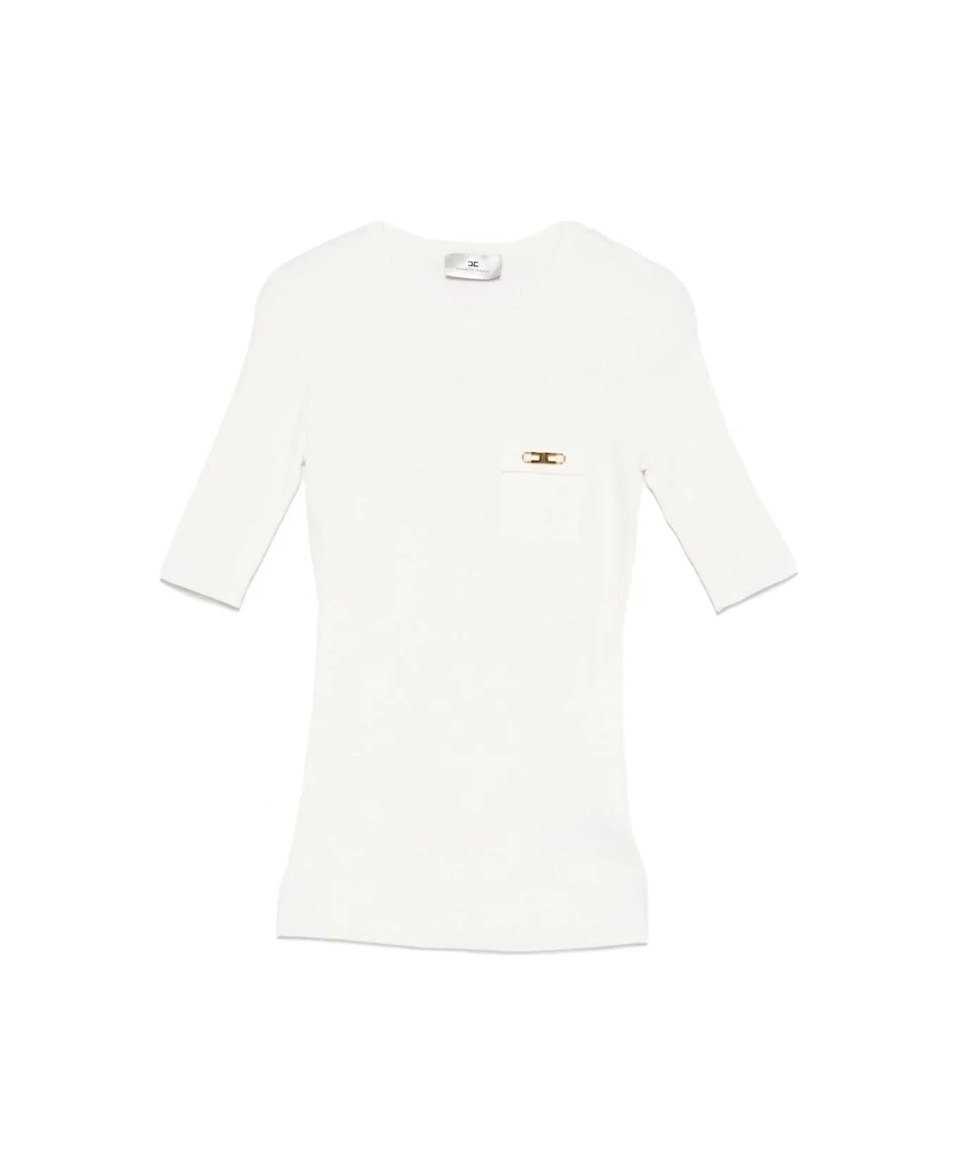 Elisabetta Franchi White short-sleeved sweater with a round neckline and gold-tone closure Color: White Model number: MK10B56E2360