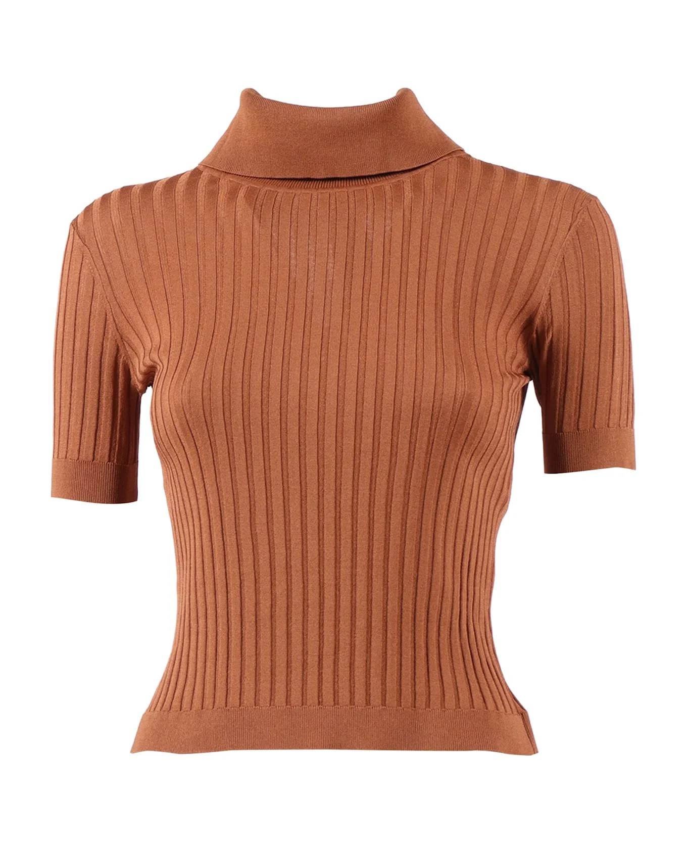 KNITTED TOP Composition: 71% VISCOSE 29% POLYESTER Made in: China Color: BROWN Model number: MK01S62E2600