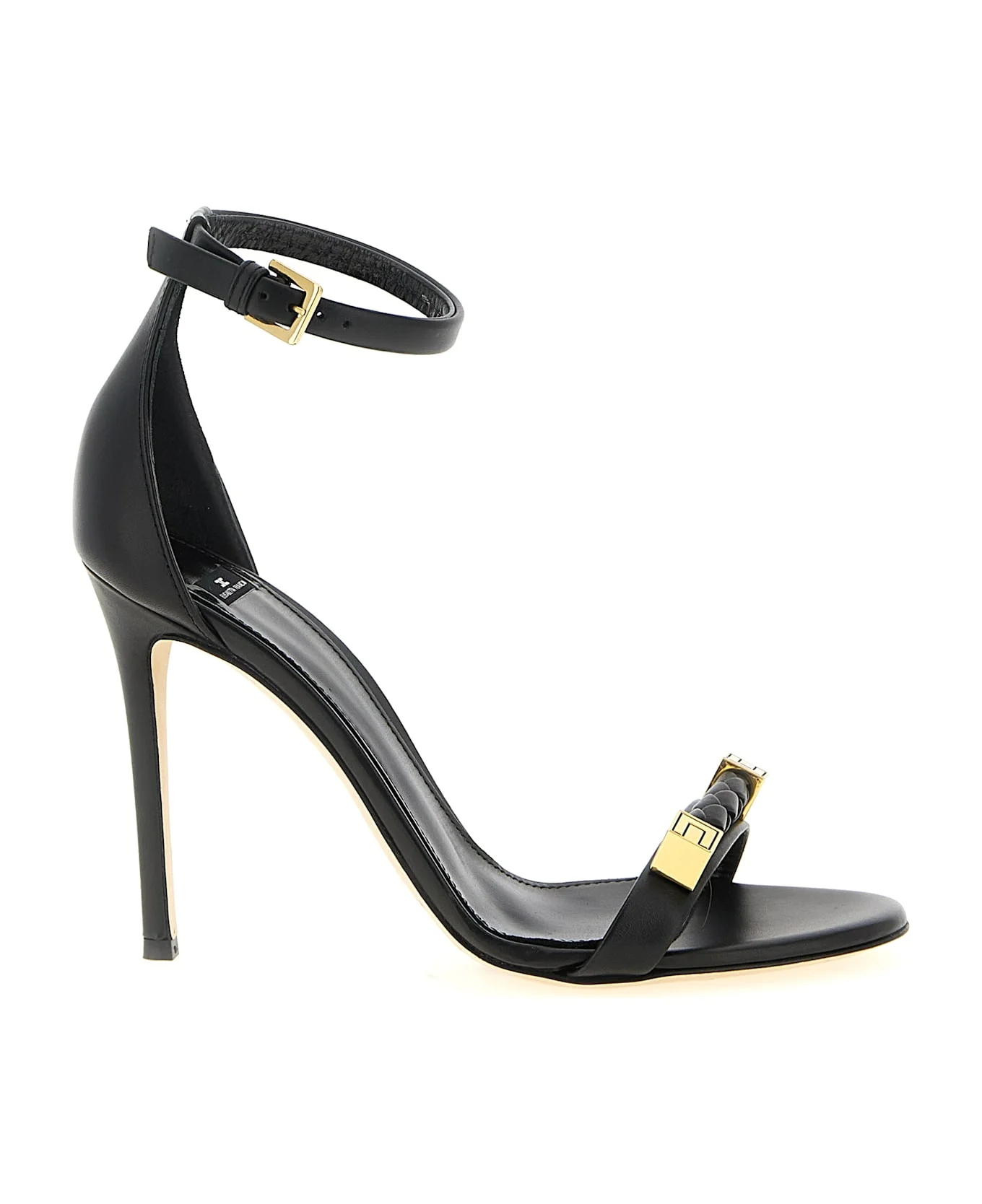 Leather sandal, front detail in woven leather with logo metal cubes, adjustable ankle strap, stiletto heel, leather sole. Composition: 100% leather Made in: San Marino Color: Black Size and fit: - EU WOMAN - Heel: 10 cm Model number: SA12L61E2110