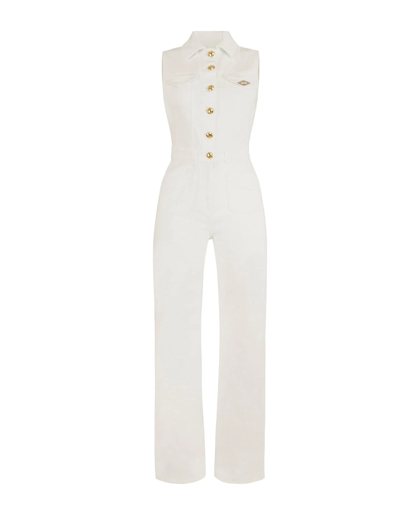 Closure with gold metal buttons Sleeveless Four front pockets Metal logo detail Made in Italy 97% cotton, 3% elastane SKU: TJ45N61E2360 Made in: Italy Color: Ivory Model number: TJ45N61E2360