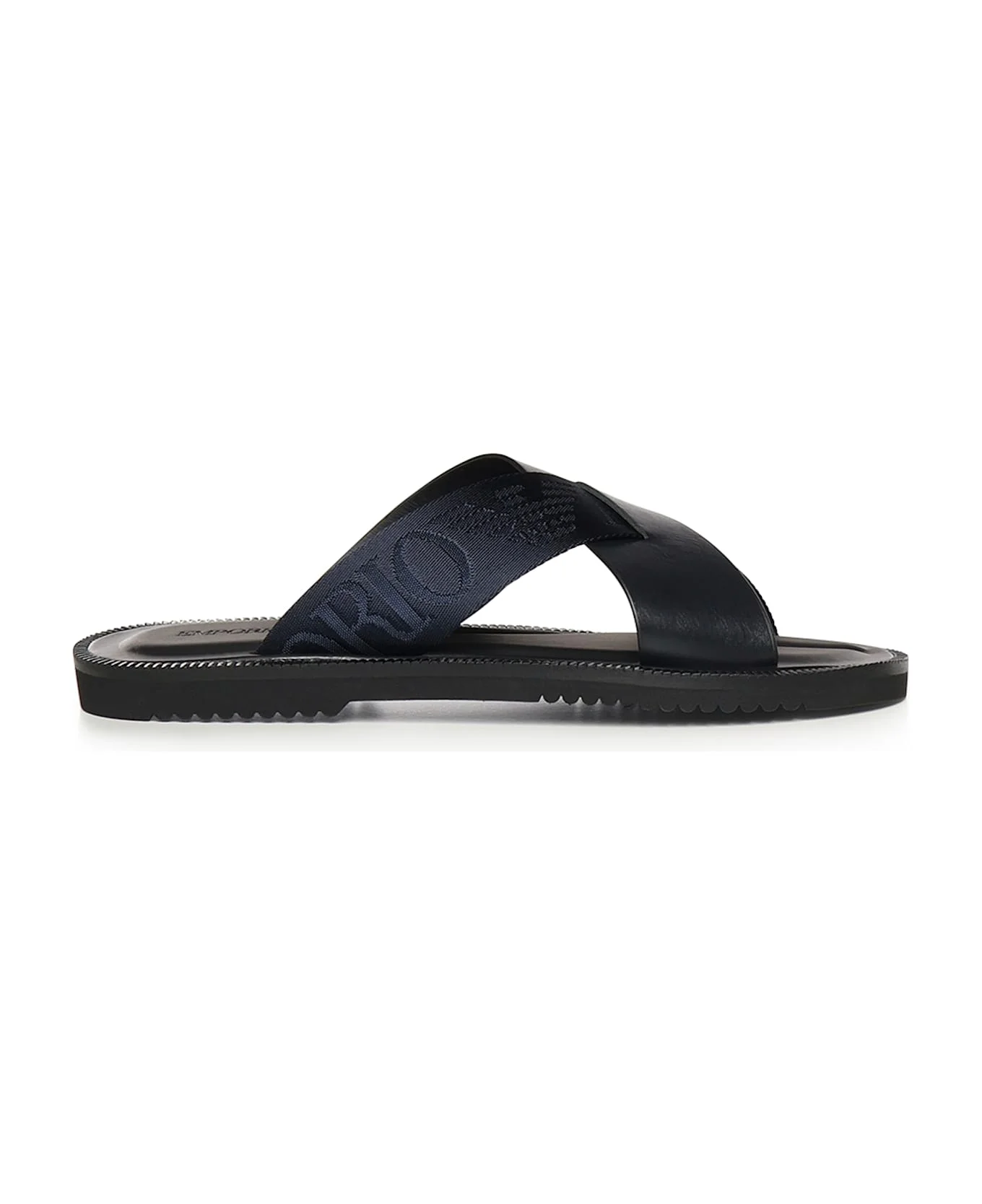Leather And Ribbon Crisscross Sandals With Logo