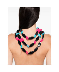 black/turquoise/pink geometric beads lobster claw fastening silver-tone hardware adjustable-length chain Normal everyday use and external agents may reduce the lustre of gemstones and gold surfaces. To maintain, use specific, non-abrasive products specially meant for cleaning jewellery. Composition: 4% Polyester, 90% Poly(methyl Methacrylate), 4% Aluminium, 2% Zama Made in: Italy Color: Black Size and fit: - Length when open: 51.0 Centimetres - Minimum Length: 48.0 Centimetres - Model number: EW002859AF19370MC330