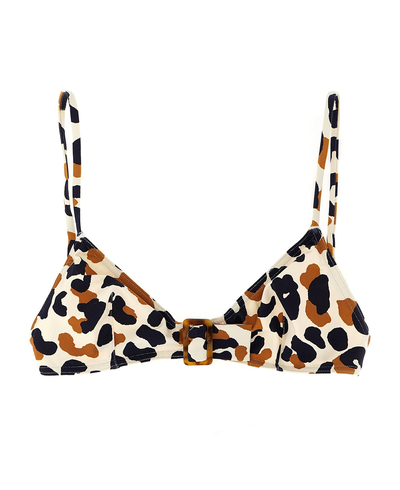 Ecailles' bikini top in Coquillage polka dot print Peau Douce fabric with triangle style with breast clamp and side underwires, amber-effect acetate buckle between the cups, adjustable neck strap and back hook. Composition: 77% polyamide, 23% elastane Made in: France Color: Multicolor Size and fit: - True to size fit - ERES size Model number: 032509IMPCOQUILLAGSABLEFIN