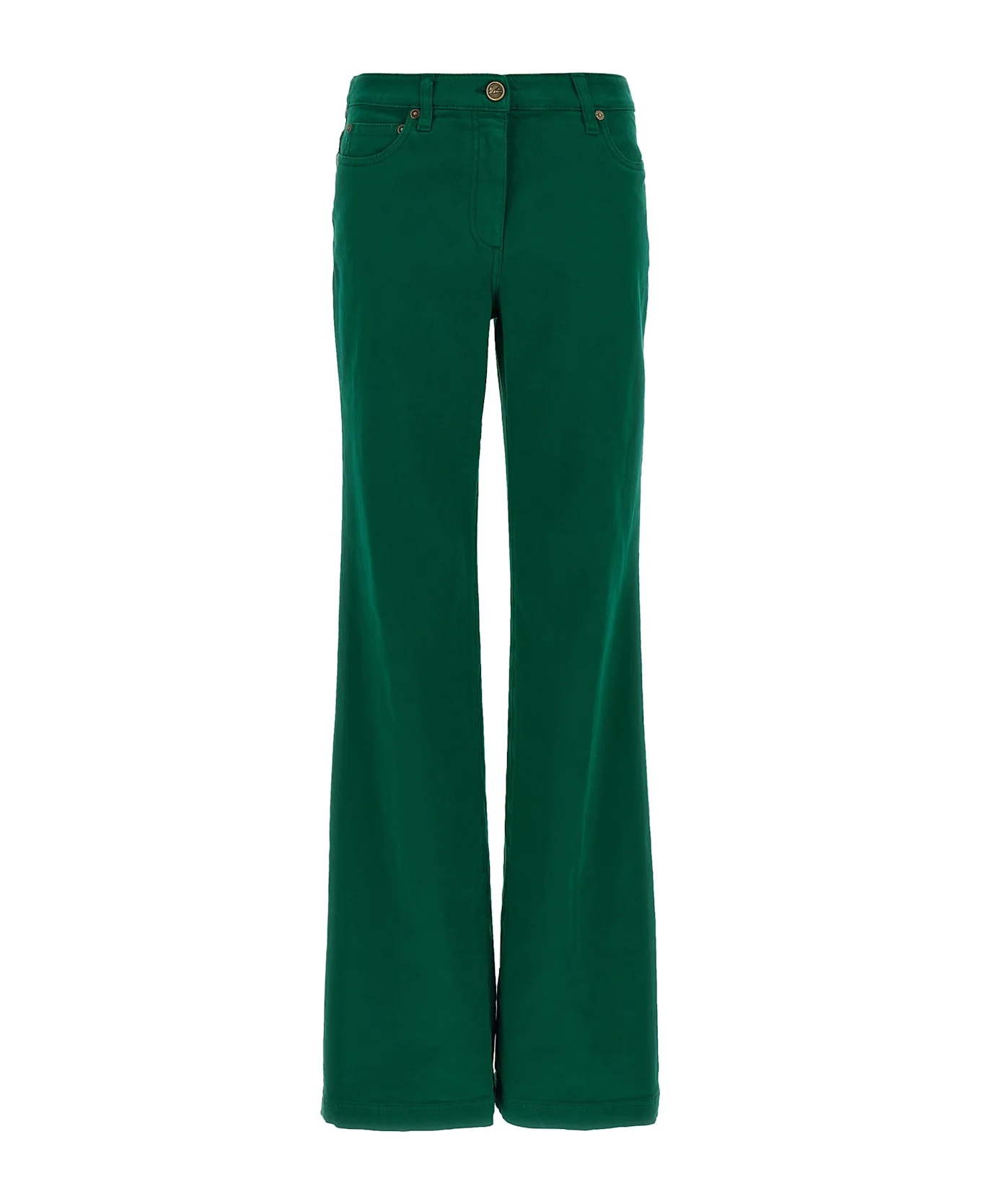 Cotton pants, wide and straight leg, low waist, front zip and button closure, pockets, logo embroidery and back logo tag. Composition: 98% cotton, 2% elastane Made in: Italy Color: Green Size and fit: - true to size fit Model number: WRNB0026AV689V0402