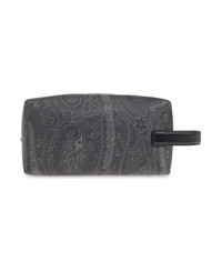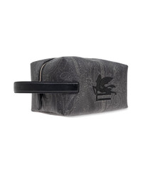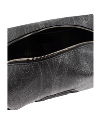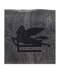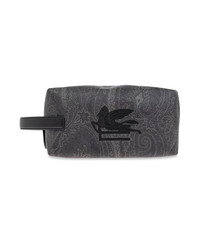 With a distinctive elongated rectangular silhouette, this black cosmetic case by Etro radiates understated luxury. The exterior is crafted from refined canvas featuring a subtle, tactile texture and entirely enveloped in an exquisite paisley motif a hallmark of Etro's signature style, inspired by the rich heritage of Asian artistry. A bold, expertly embroidered Pegasus logo ornamentally graces the front, offering a tangible matte finish that unmistakably signals sophistication. The sturdy side handle, meticulously fashioned from smooth black leather, ensures ease of carry and elevates everyday utility to an artful experience. Thoughtful construction and attention to detail distinguish this essential accessory, blending elegance with modern practicality. Why choose this product? Distinctive paisley design, synonymous with Italian luxury Embroidered matte black Pegasus logo as a signature accent Luxurious blend of leather and canvas materials Ergonomic leather handle for effortless portability Iconic craftsmanship by Etro, Milan's renowned house of style Composition: Inner Layer: 100% Fabric Outer Layer: Canvas Leather Made in: Italy Color: GREY Size and fit: - Width: 13cm - Length: 26cm Model number: AA012MP2C0010