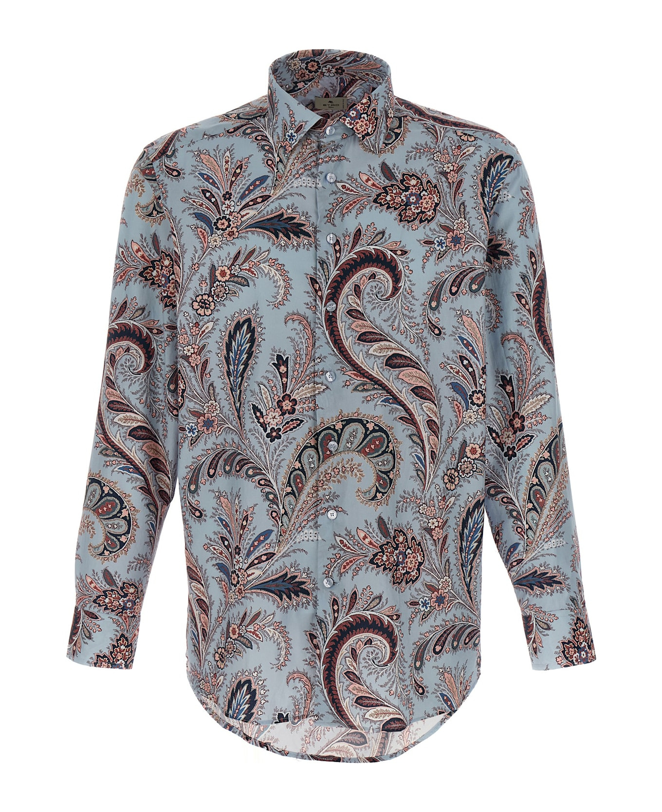 All-over floral Paisley print cotton shirt, front button closure, long cuffed sleeves. Composition: 100% cotton Made in: Italy Color: Light Blue Size and fit: - Roma fit - COLLAR size Model number: MRIB000199SA5L1X0880