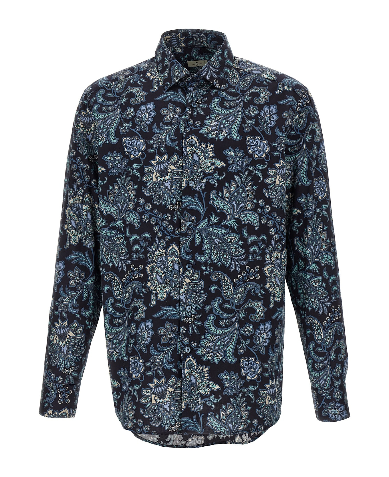 All-over floral Paisley print cotton shirt, front button closure, long cuffed sleeves. Composition: 100% cotton Made in: Italy Color: Blue Size and fit: - Roma fit - COLLAR size Model number: MRIB000199SA5L8X0883
