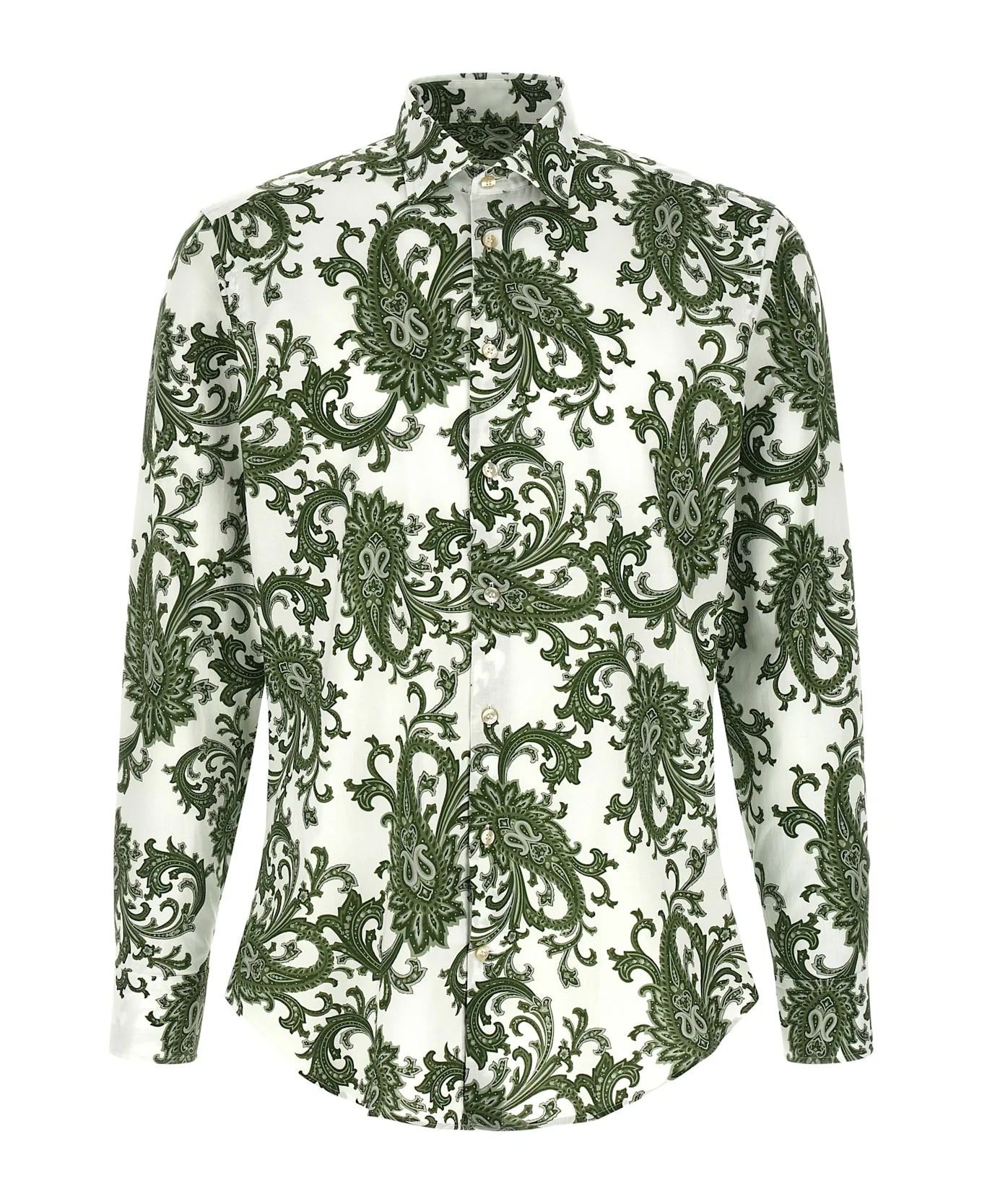 All-over 'Paisley Ramage' stretch cotton shirt, front button closure, long cuffed sleeves. Composition: 97% cotton, 3% elastane Made in: Italy Color: Green Size and fit: - true to size fit - COLLAR size Model number: MRIB000599SAEG7X0802