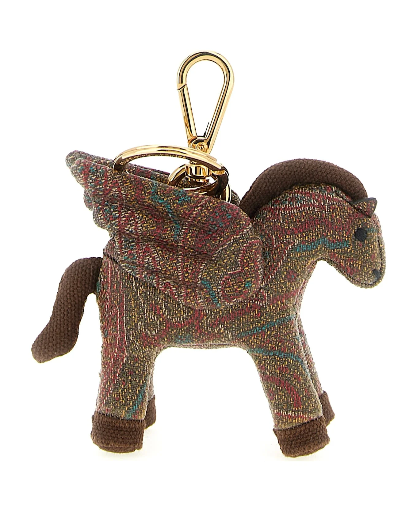 'Pegaso' keyring in 'Arnica' Paisley jacquard fabric with solid cotton details, snap hook and metal keyring ring. Composition: 76% cotton, 24% polyester Made in: Philippines Color: Brown Size and fit: - W 11 x H 9 cm Model number: WP2I0046AA001M0019