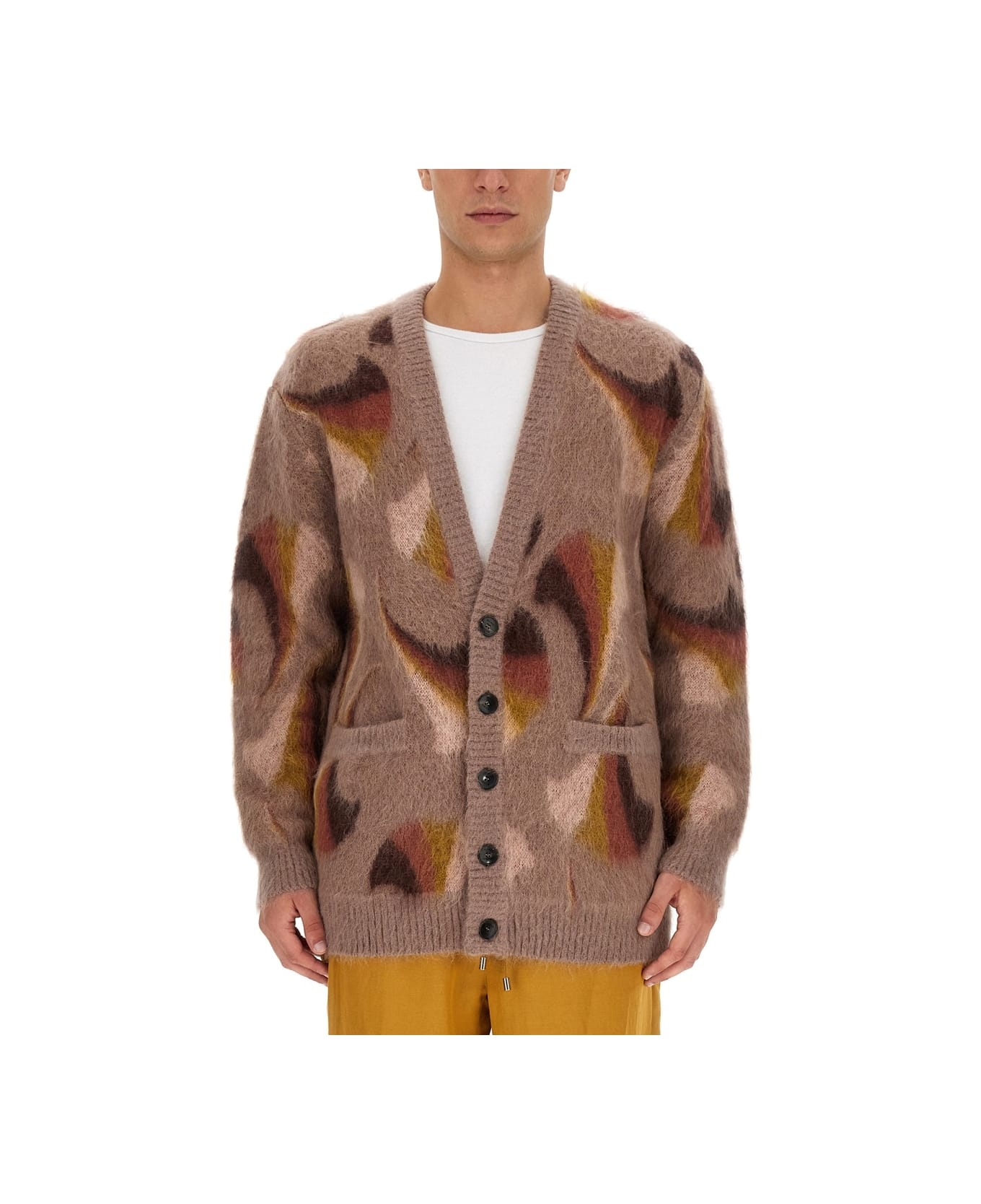 Printed Brushed Mohair-Blend Jacquard Cardigan