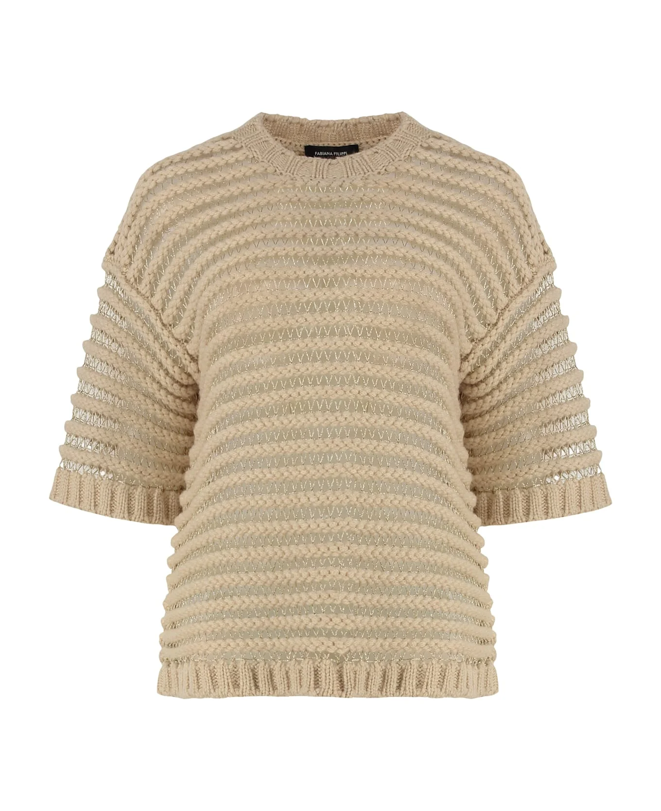 Model with lurex threads ribbed knit edges 100% camel, 66% viscose, 34% metallic fibers Composition: 100% % Camel, 66% % Viscose, 34% % Metallic Fibers Made in: Italy Color: NEUTRALS Model number: MAD215F094L520