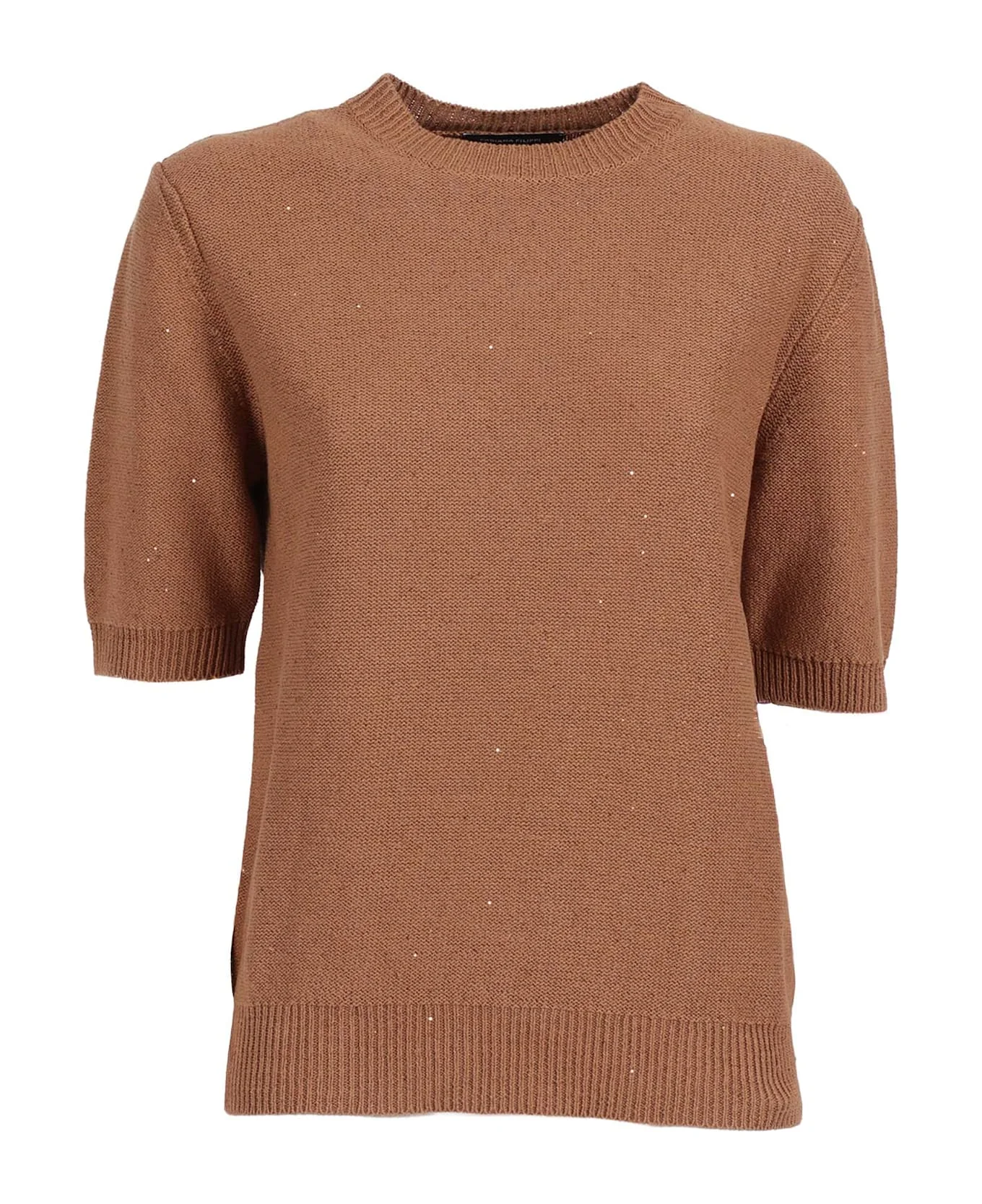 SEQUIN SHORT SLEEVE CREW NECK SWEATER Composition: 61% COTTON 38% LINEN 1% POLYESTER Made in: Italy Color: BEIGE Model number: MAD266F490D2731268