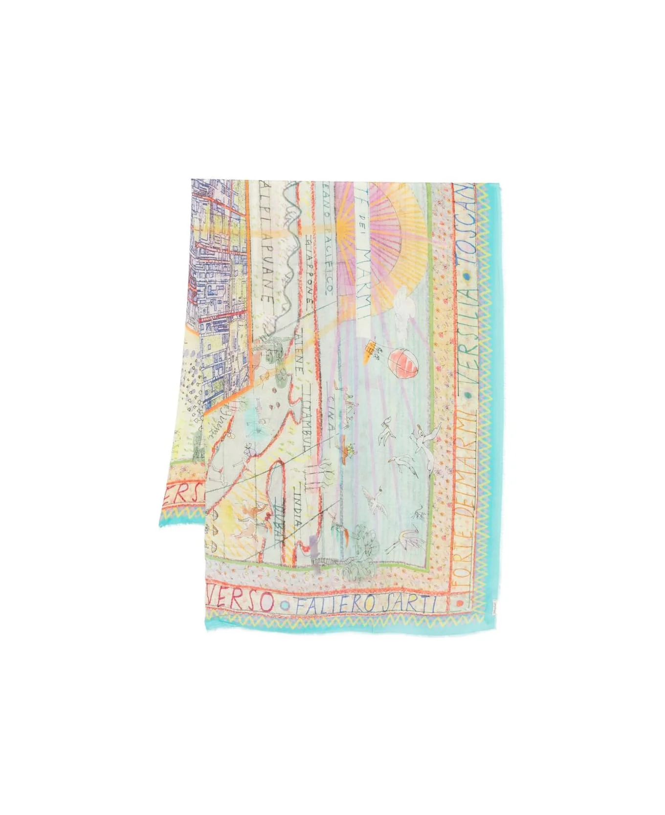 light blue print fringed trim Composition: Modal, 85% , Silk, 15% Made in: Italy Color: Clear Blue Model number: 20781200