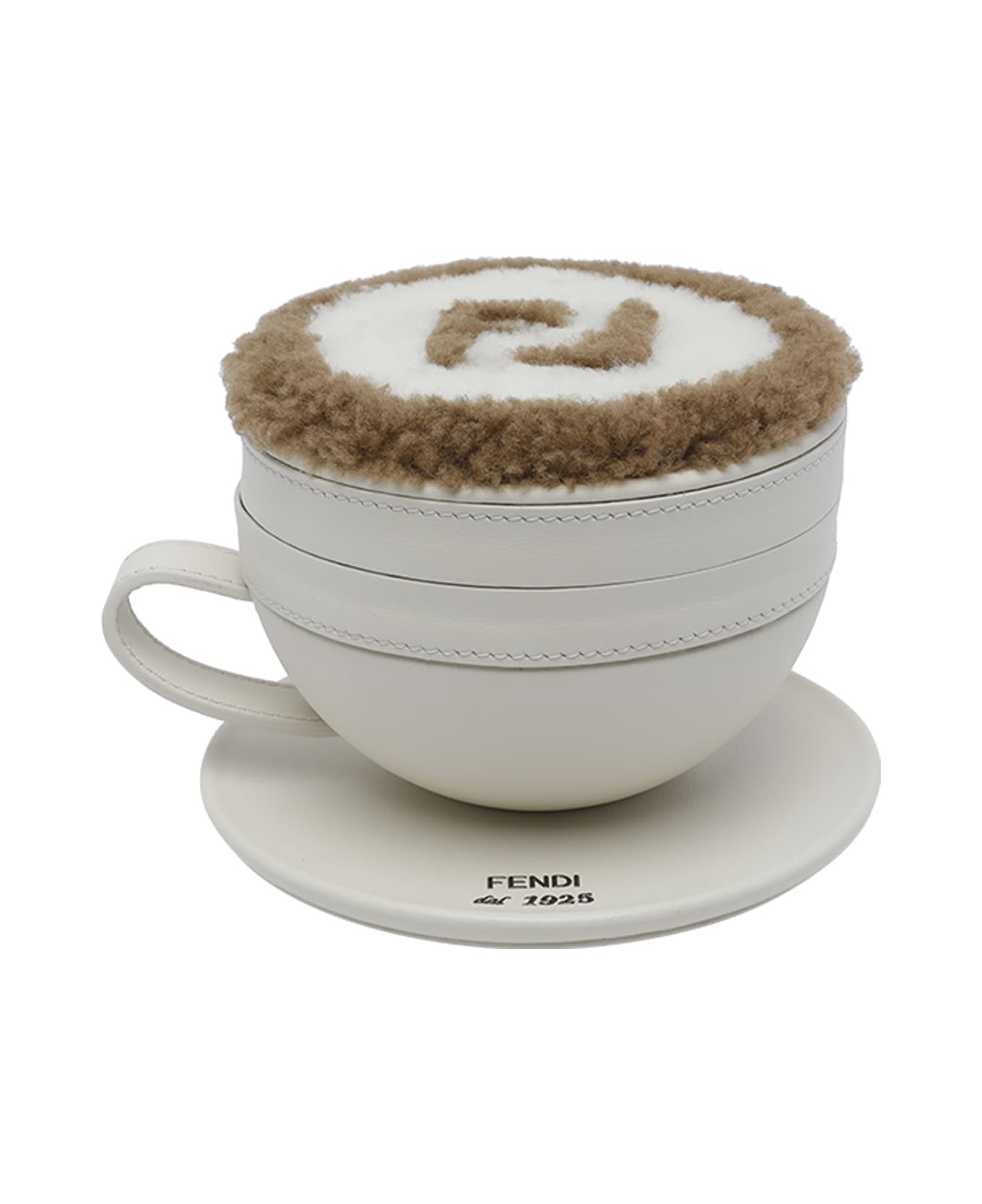 Fendi white leather cappuccino charm, zip closure, logo on front, fabric upper, hook closure Composition: 100% Calf Leather Made in: Italy Color: White Size and fit: - 9x13,5 cm Model number: 7AS402AV7YF1TQJ