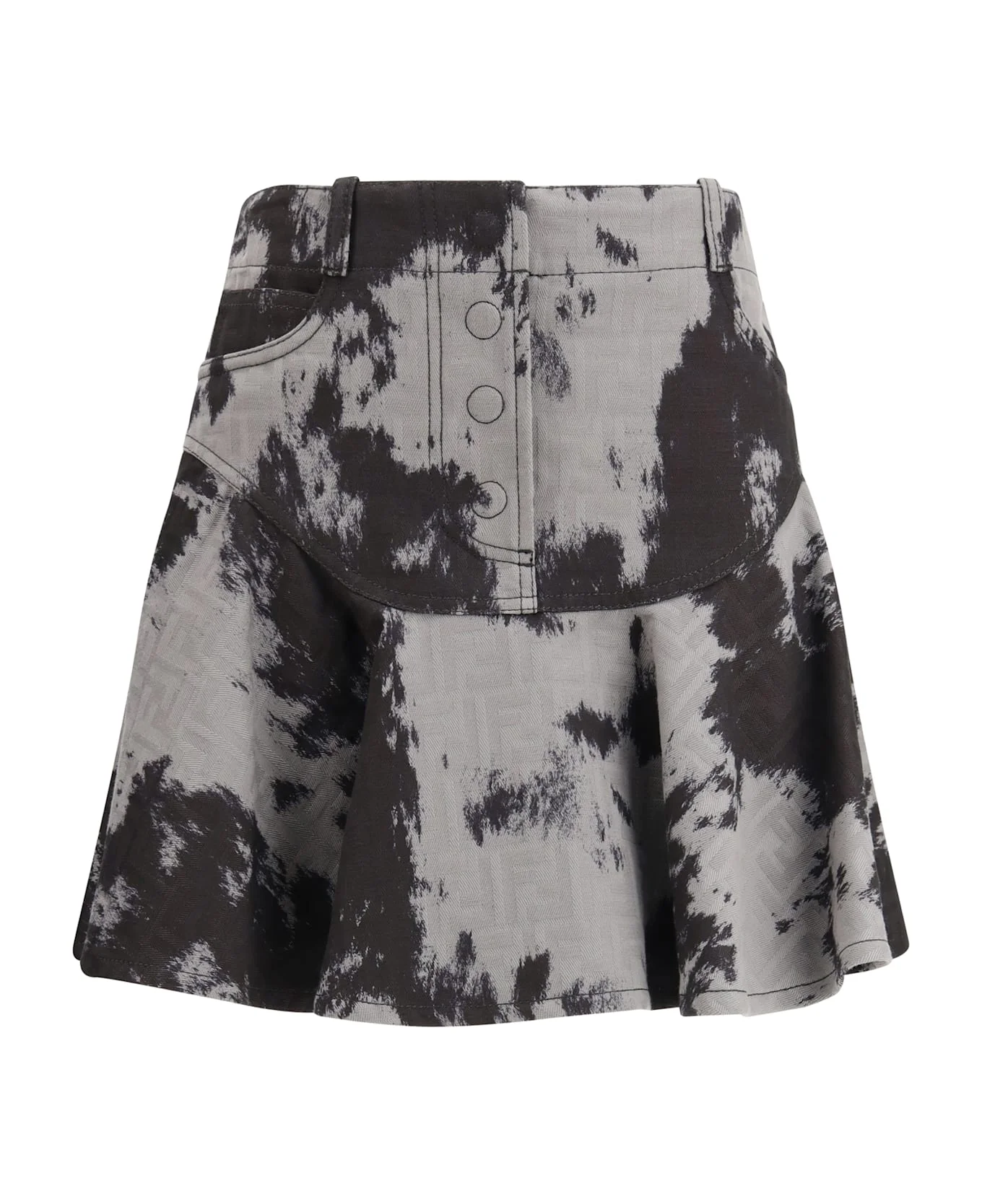 The denim miniskirt by fendi features a high-waisted flared line that enhances the silhouette with balanced, natural elegance. made from jacquard denim, it combines a structured construction with a soft texture that reinterprets the maison s artisanal heritage in a contemporary key. the archive-inspired pattern and refined details, such as the front button closure and leather label on the back, lend the piece a distinctive and sophisticated character. Composition: 100% % Cotton Made in: Italy Model number: FLQ602AVF5F0GME
