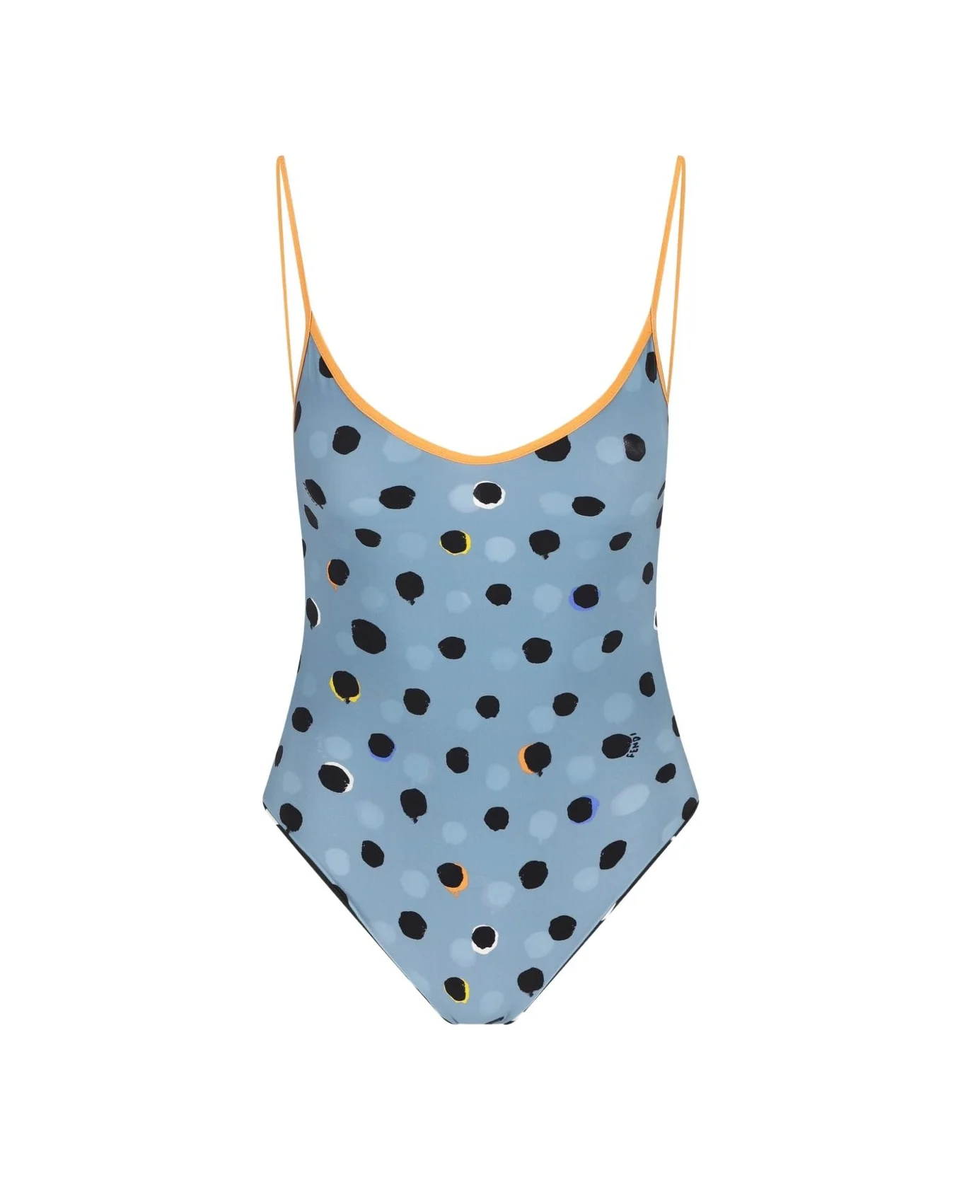 blue polka dot print orange trim thin straps scoop neck low back Composition: 75% Nylon, 25% Elastane,fod. : 75% Nylon, 25% Elastane Made in: European Union Color: Black Model number: FXBA70AT9GF1V3Y