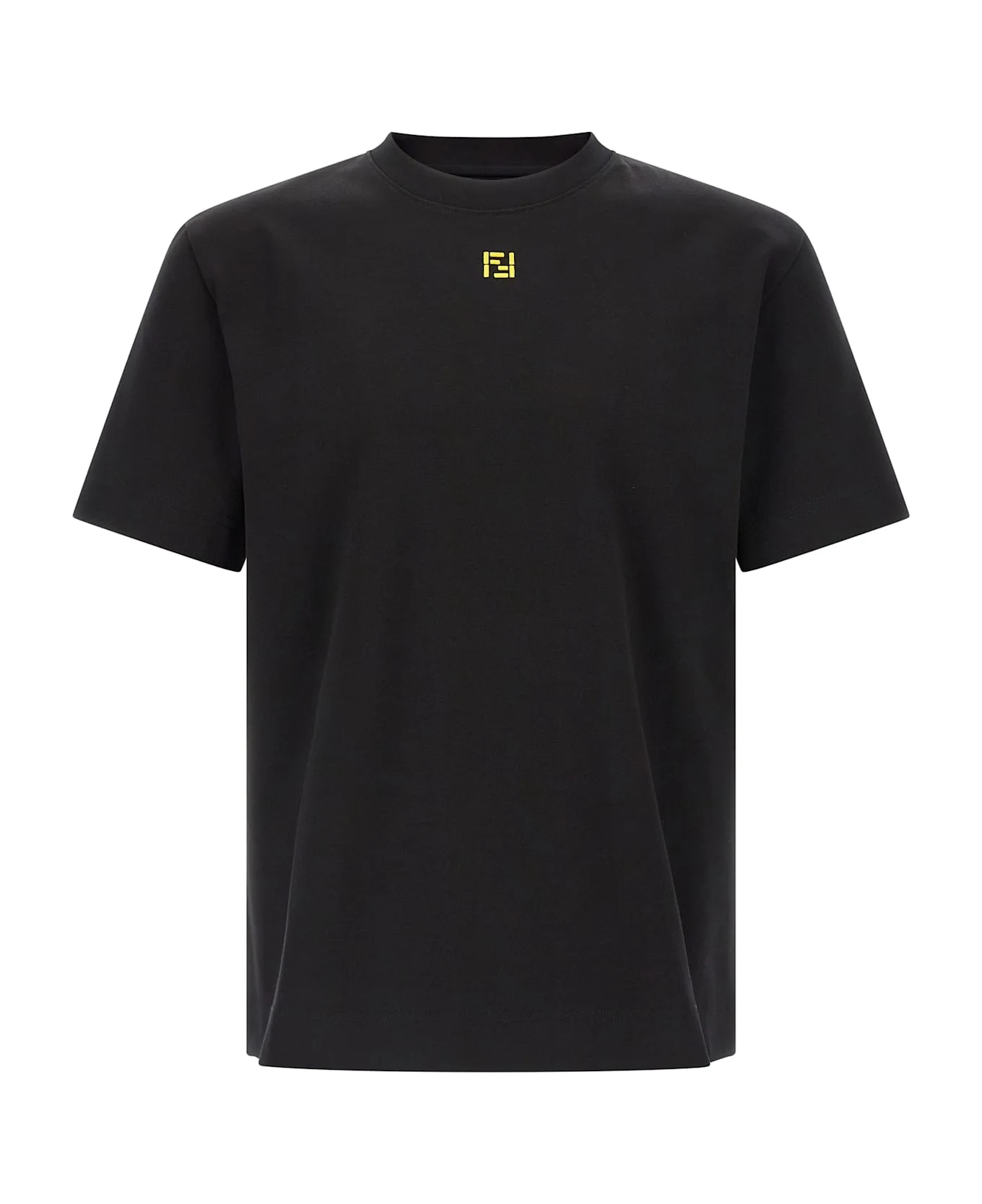 Thick cotton jersey T-shirt, crew neck, contrast front 'FF' logo embroidery, short sleeves. Composition: 100% cotton Made in: Italy Color: Black Size and fit: - True to size fit Model number: FY0936AY0HF0QA1