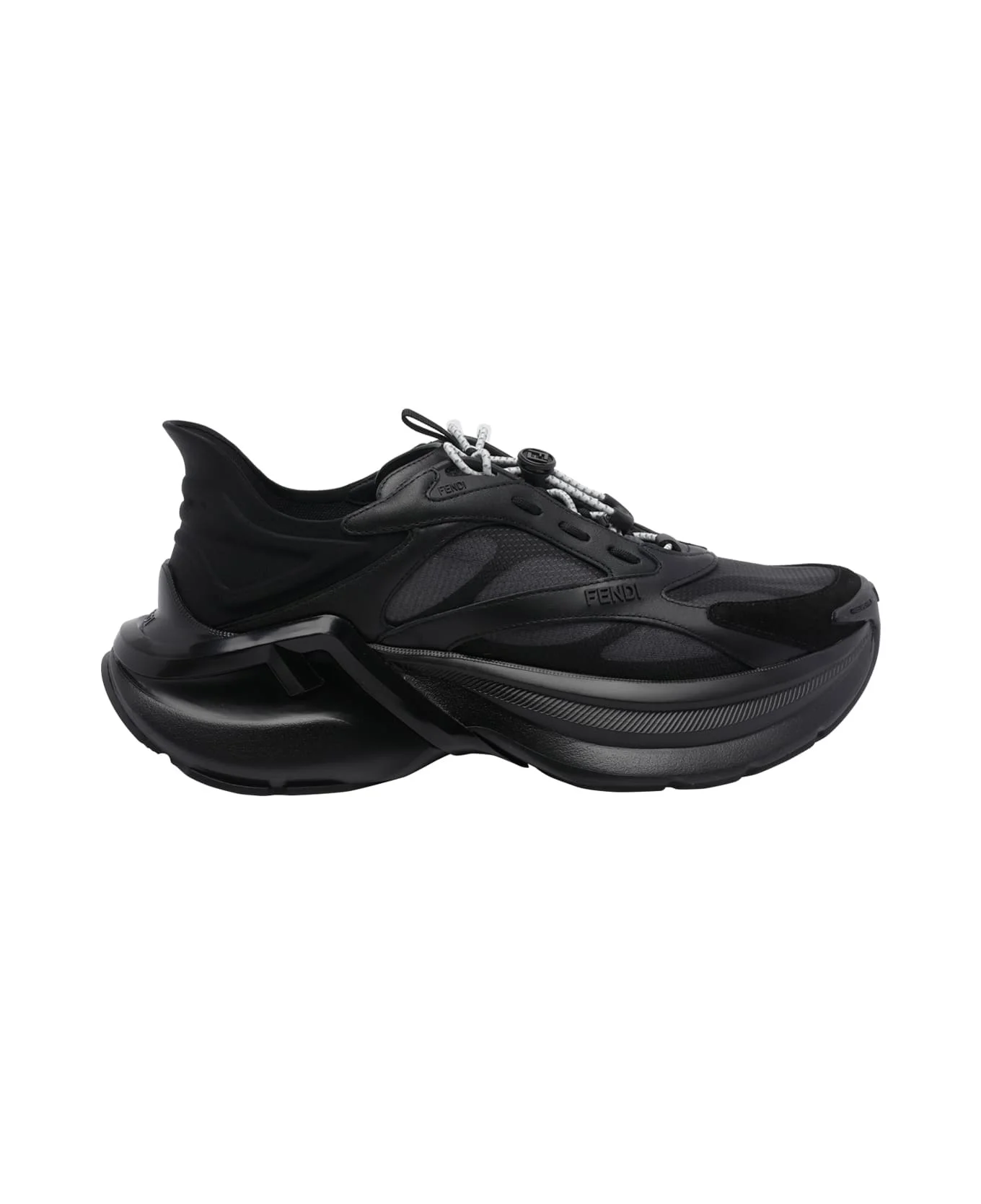 Fendi F-Light Sneakers Black leather and mesh low-tops