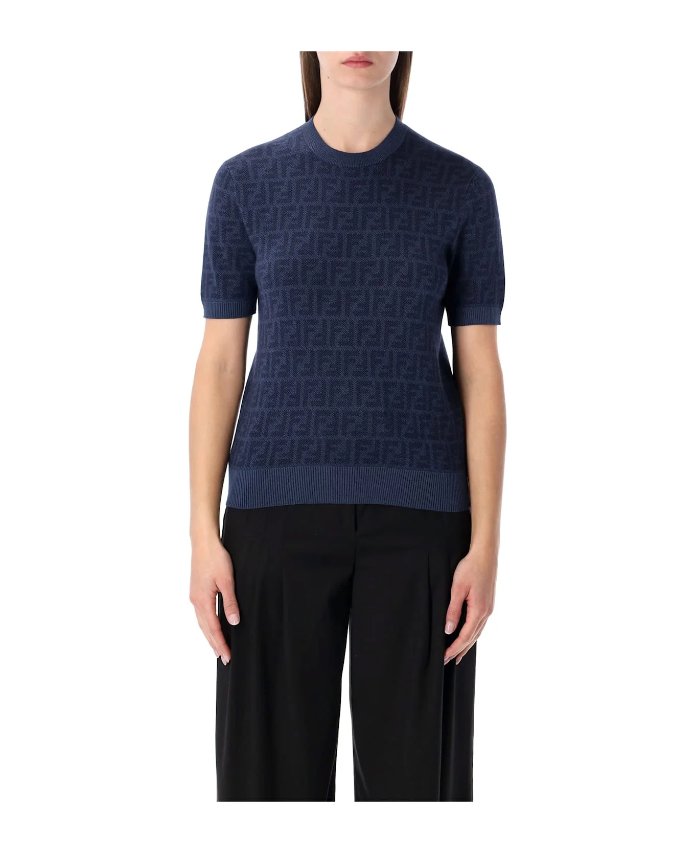 Fendi Ff Wool Silk Jacquard Jumper