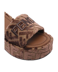 Fendi brown Fendi Sunshine sandals, round toe, FF logo allover, suede model Composition: 100% Calf Leather/, 100% Fabric+velvet/rubber Sole Made in: Italy Color: Brown Size and fit: - Heel:6 cm Model number: 8R8515AY9ZF1TP1