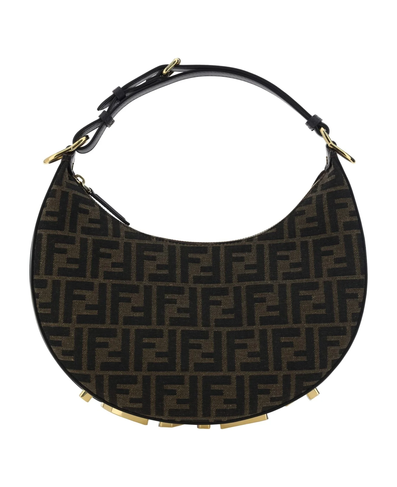 Cotton fendigraphy small handbag by fendi, coated cotton jacquard design, top zipper closure, adjustable and removable perlle handle, three-dimensional maxi logo applique at the base of the bag, single interior compartment, interior card slot, iconic all-over contrasting jacquard brand monogram. Made in: Italy Color: Tab Size and fit: - W 24 x H 18 x D 9 cm Model number: 8BR798ALP3