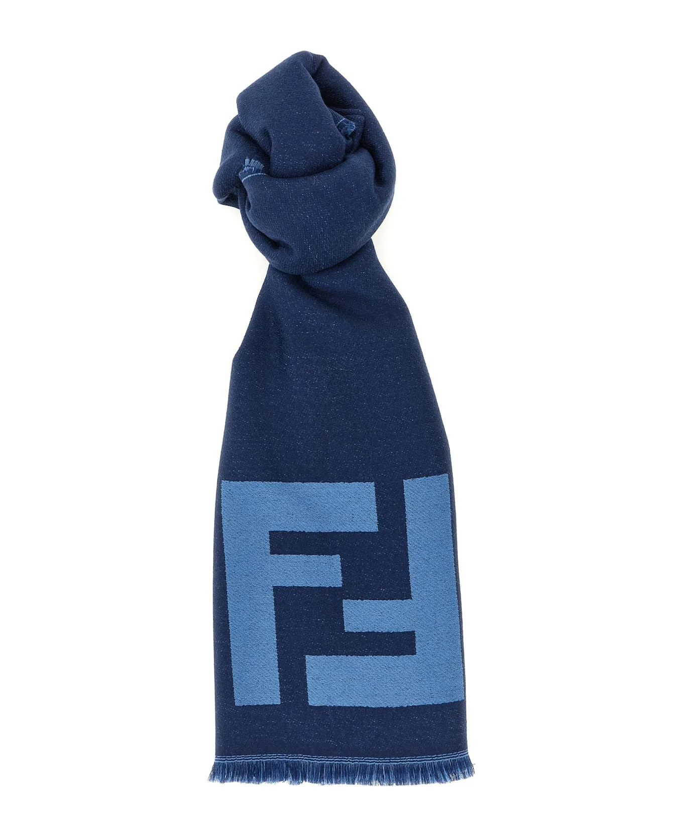 Fine wool jacquard scarf with contrasting FF macro pattern and fringed edges. Composition: 100% virgin wool Made in: Italy Color: Blue Size and fit: - 70 x 180 cm Model number: FXS407AWTZF1VHG