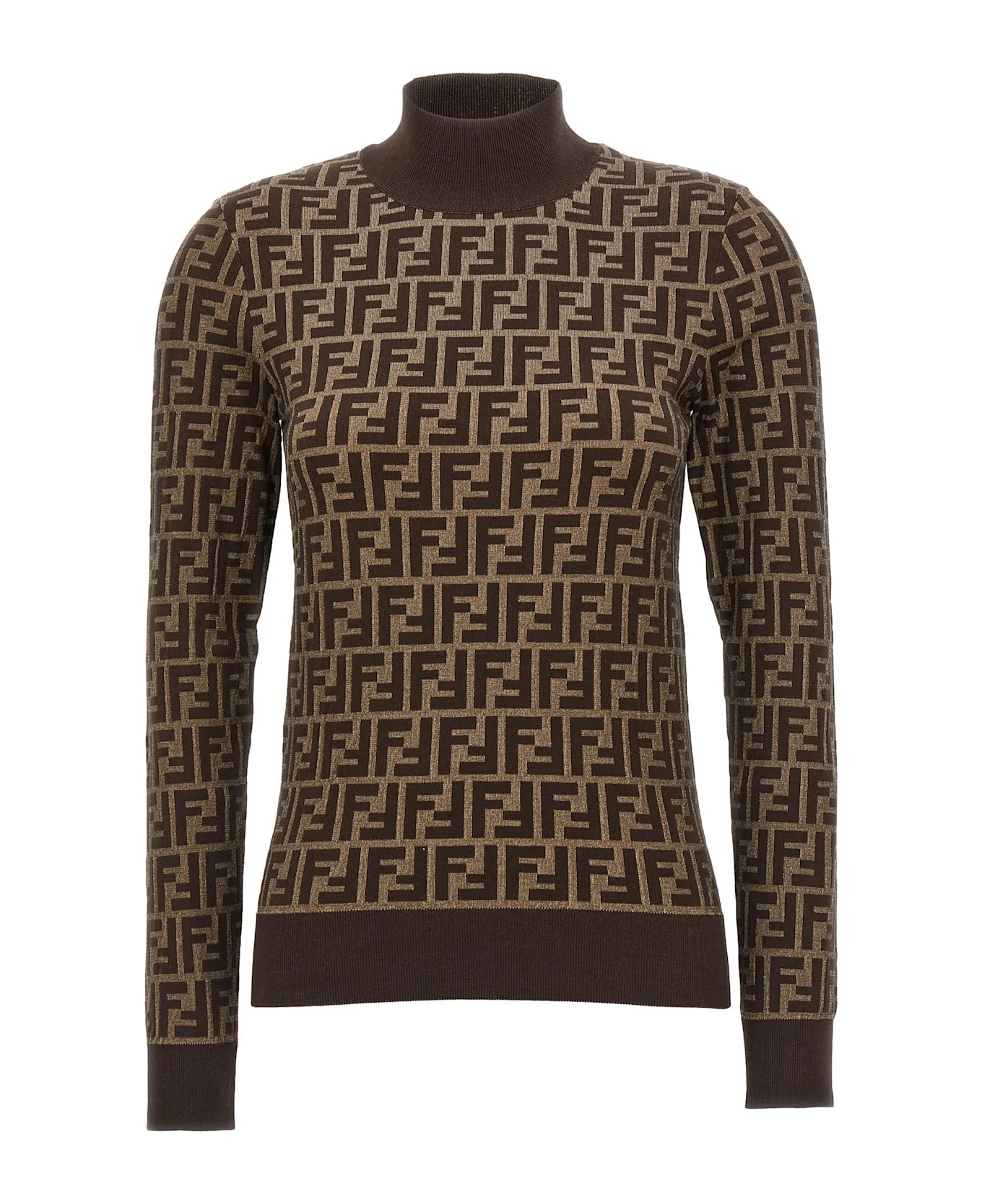 Cotton sweater with all-over 'FF' logo pattern, high neck, long cuffed sleeves. Composition: 100% cotton Made in: Italy Color: Brown Size and fit: - true to size fit Model number: FZXC73ASJTF0GGE