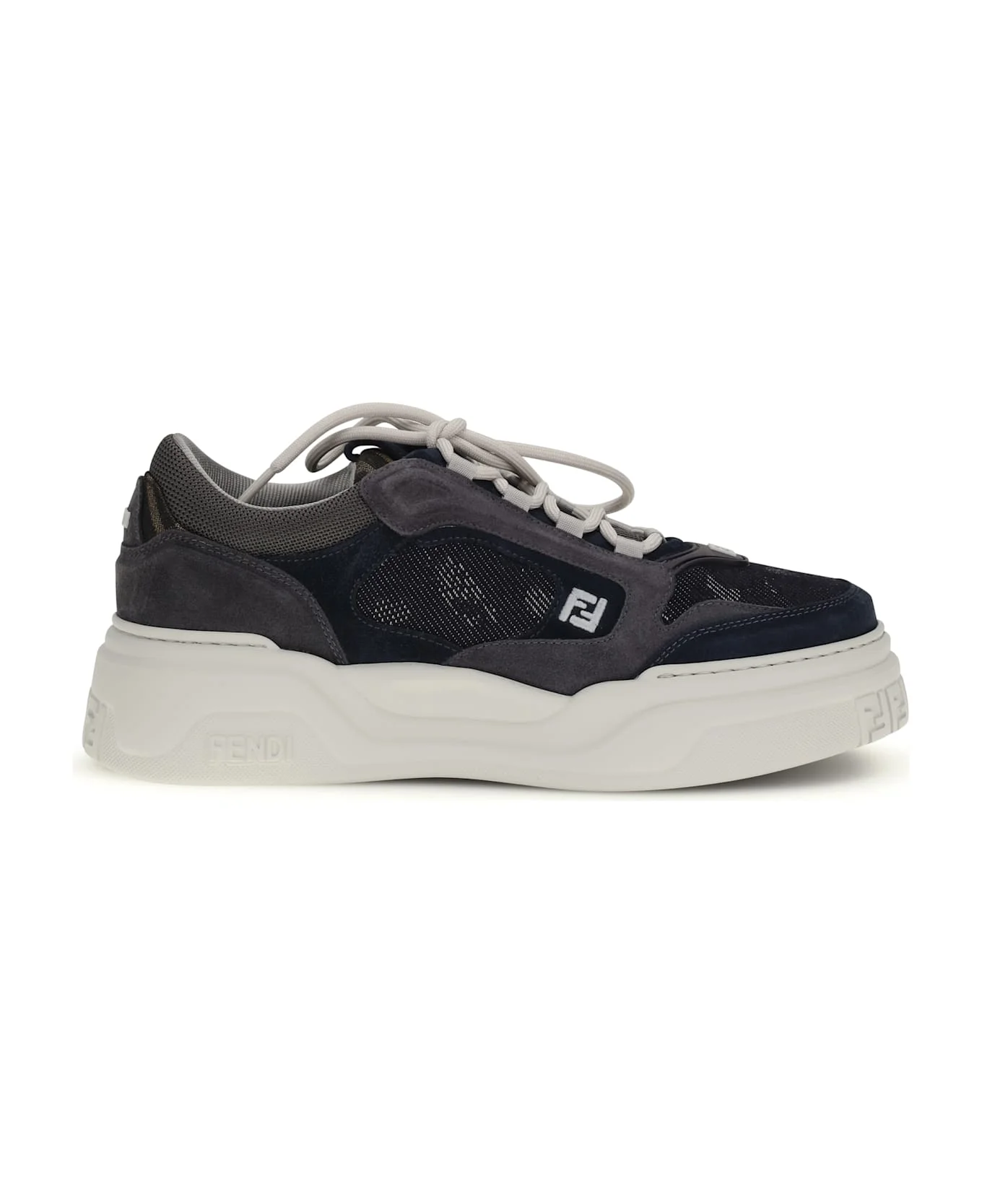 The force sneakers by fendi are a perfect blend of modern design and iconic details. crafted from denim with a fendi falena jacquard weave, these shoes are embellished with tone-on-tone padded elements for optimal comfort. the smoky gray suede inserts, injections, and indigo technical fabric give them a sophisticated and dynamic look. the ff embroidery on the side adds a distinctive touch, while the lightweight white rubber sole, with ff motif on the toe and heel, completes the look with an exclusive detail. a model that combines style and functionality, ideal for those who seek excellence even in the details. Composition: 50% % Calf Leather Bos Taurus, 50% % Cotton, 100% % Rubber Made in: Italy Model number: 7E1728AYFTF1V8C