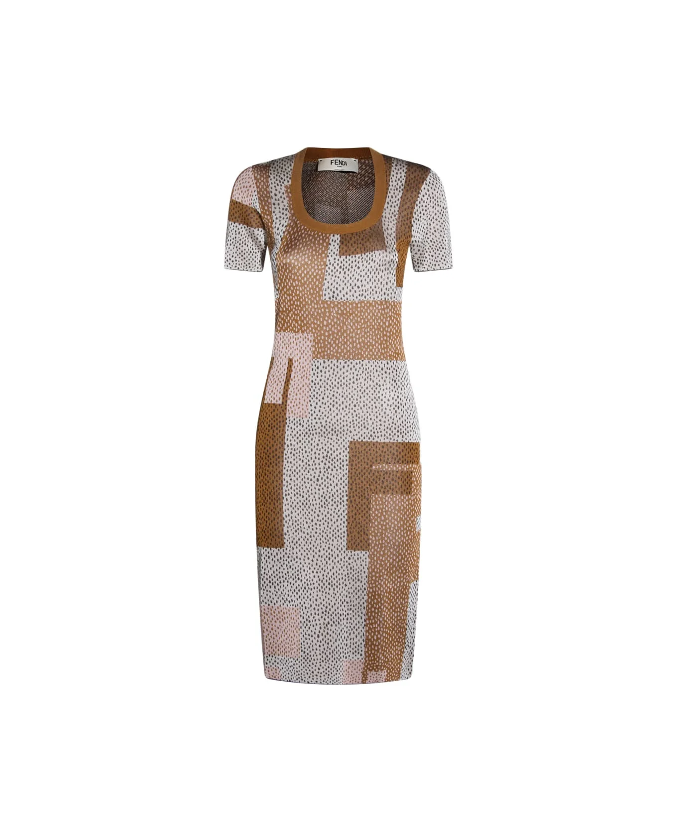 Multicolor viscose dress from Fendi featuring round collar, short sleeves and midi lenght. Composition: _, 90% Viscose, 8% Polyamide, 2% Polyester Made in: Italy Color: MULTI/IVORY Model number: FZDE08AW4EF047E