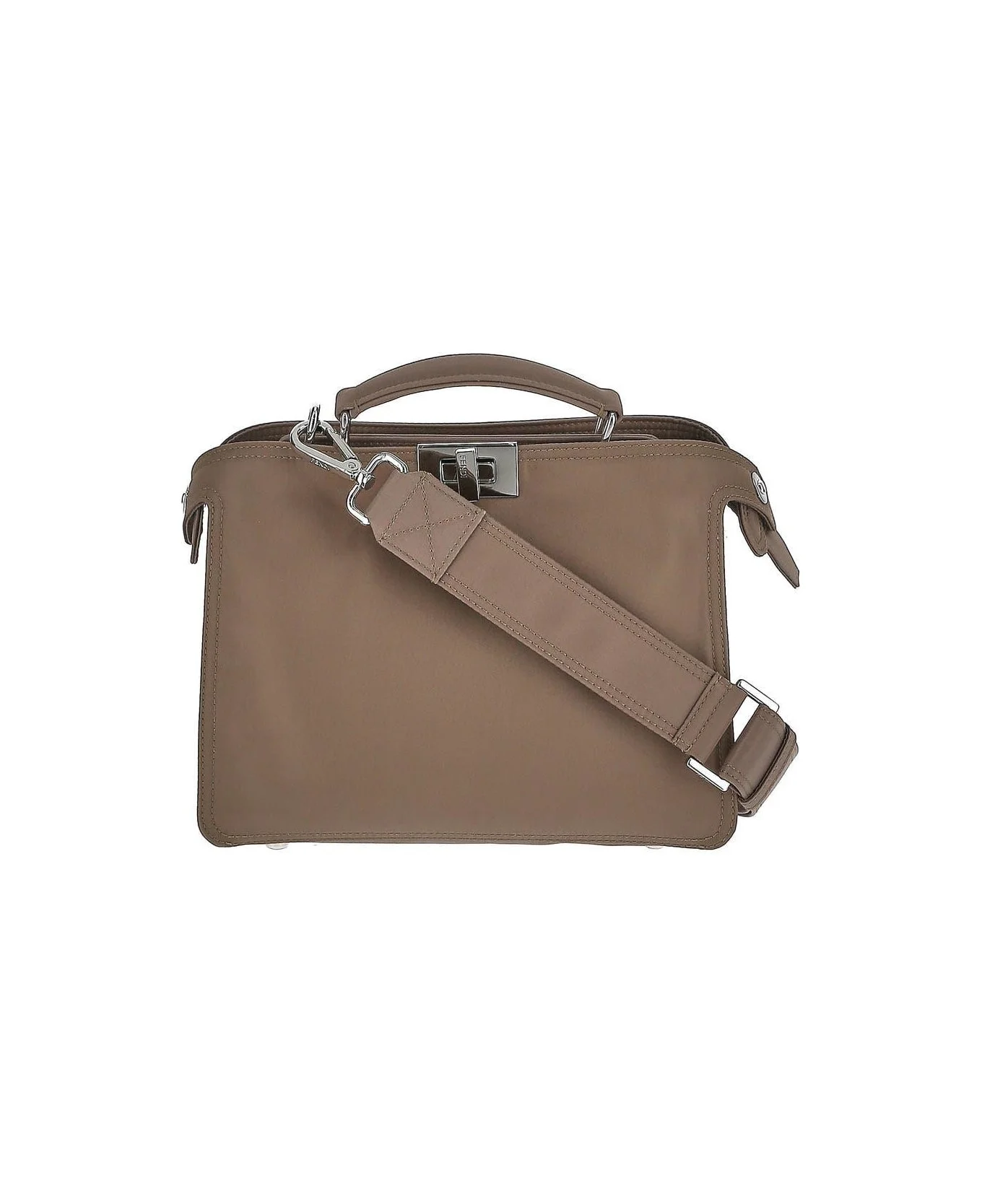Fendi 'Peekaboo Iseeu' Small Bag, leather, beige colour, rigid handle, adjustable and removable shoulder strap, front swivel closure, back zip closure, two internal compartments, one internal removable pocket. - 52% polyester, 35% polyamide, 9% polyethylene, 4% resin - h 25 x w 26 x d 10. 5 cm Made in: Italy Color: NUDE Model number: 7VA530AGQIF1GLE
