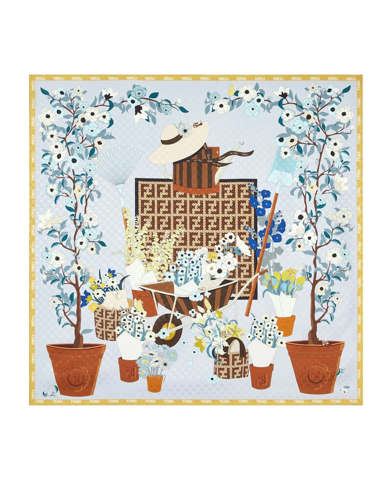 Gardening print FF motif Lettering logo trim Made in Italy 100% Silk W: 90 cm, H: 90 cm SKU: FXT091B01TF1WO1 Made in: Italy Color: MultiColour Model number: FXT091B01TF1WO1