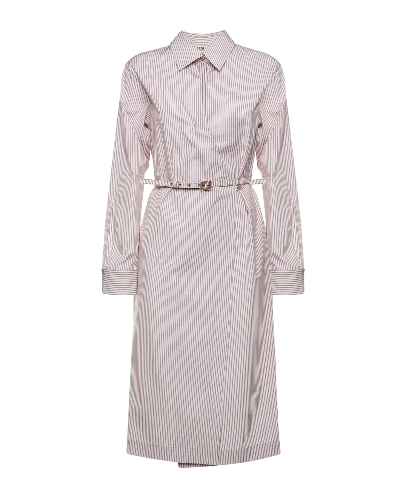 - Made of pure cotton - Pointed collar - Long sleeves with cuffs - Matching belt with removable FF metal buckle - Regular fit - Size shown is 40 - Made in Italy - Designer color: Mou Made in: Italy Color: MOU Model number: FDD515AVJXF1UKB