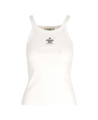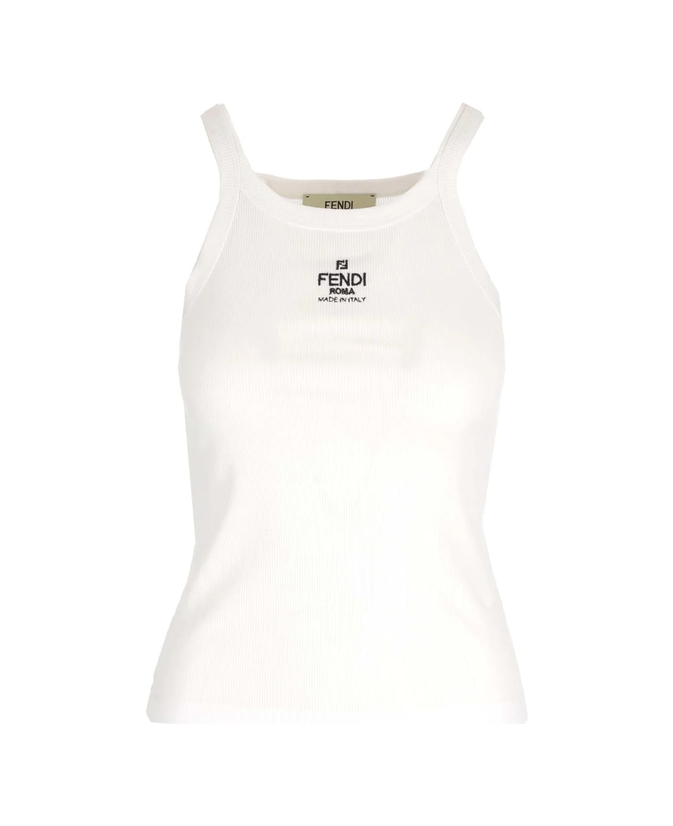 Tank top from Fendi in white ribbed cotton jersey with Fendi Roma logo. Composition: 94%CO,6%EA Made in: Italy Color: Znm White Model number: FS7966ANQM