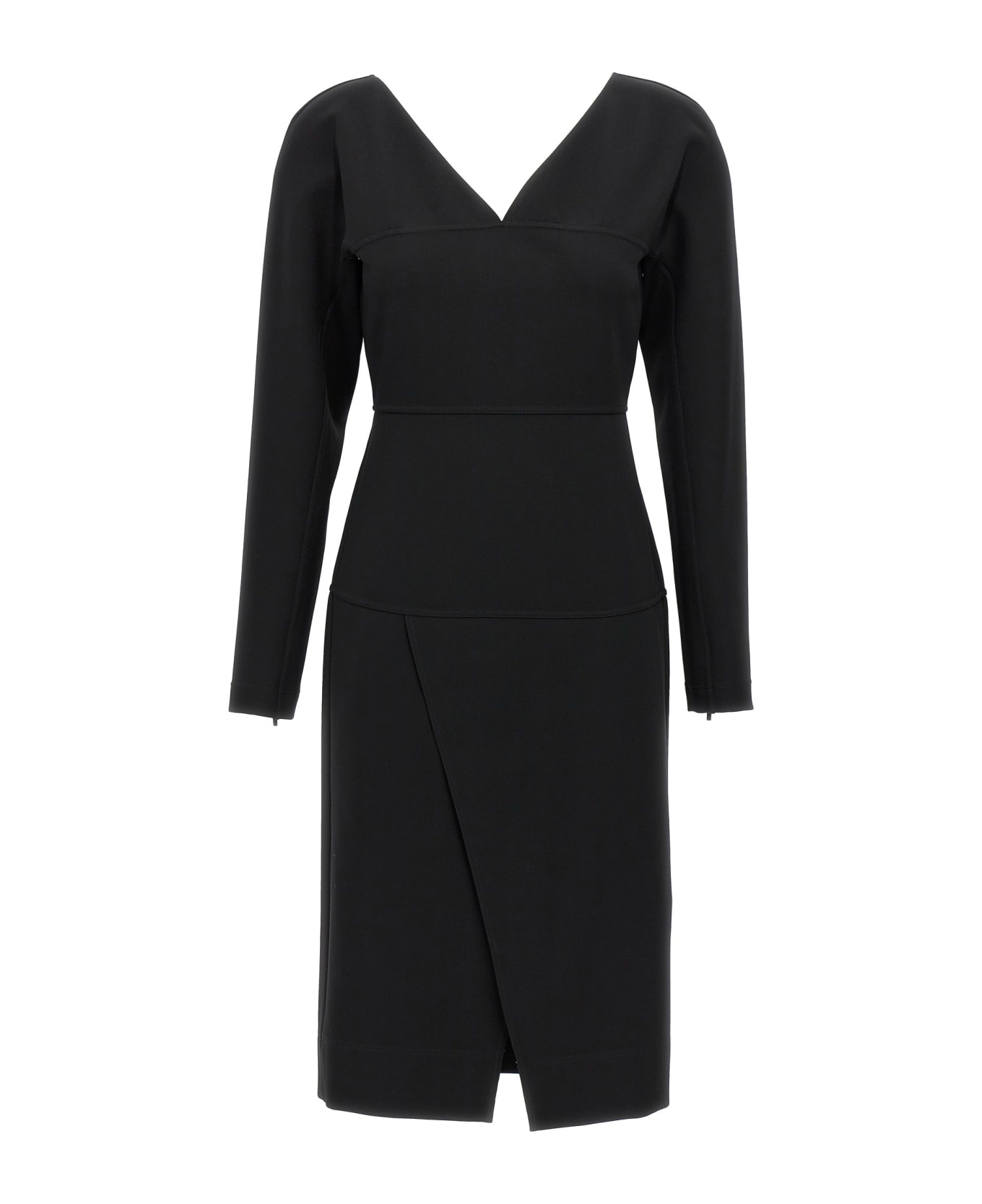Techno jersey fabric dress, V-neck front and back, long sleeves with zip detail, front split, back zip closure. Composition: 75% viscose 17% polyamide 8% elastane Made in: Italy Color: Black Size and fit: - true to size fit Model number: FDD185AJYEF0GME