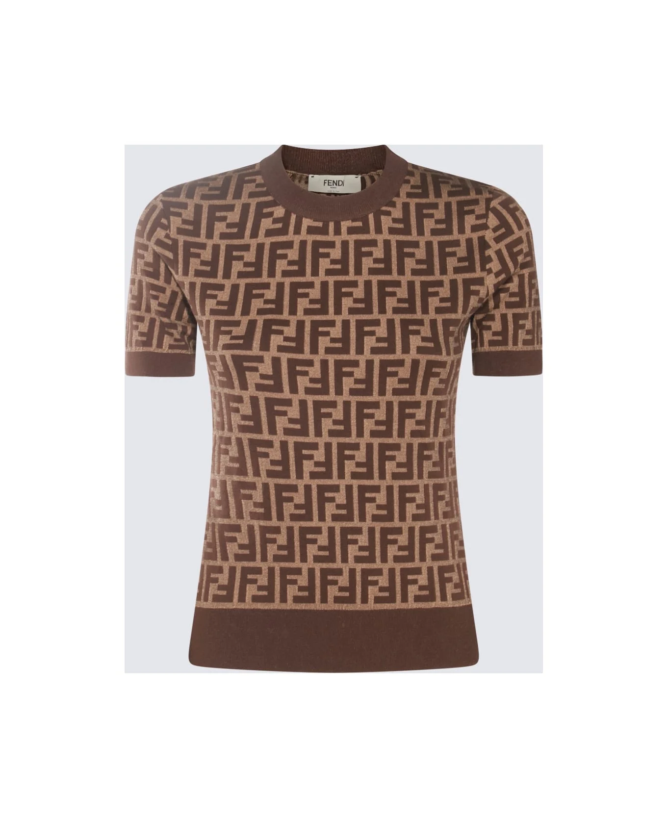 Tobacco cotton knitwear from Fendi featuring short sleeves, round collar and all over monogram. Composition: _, 82% Cotton, 18% Polyamide Made in: Italy Color: TOBACCO Model number: FZXC72ASJTF0GGE