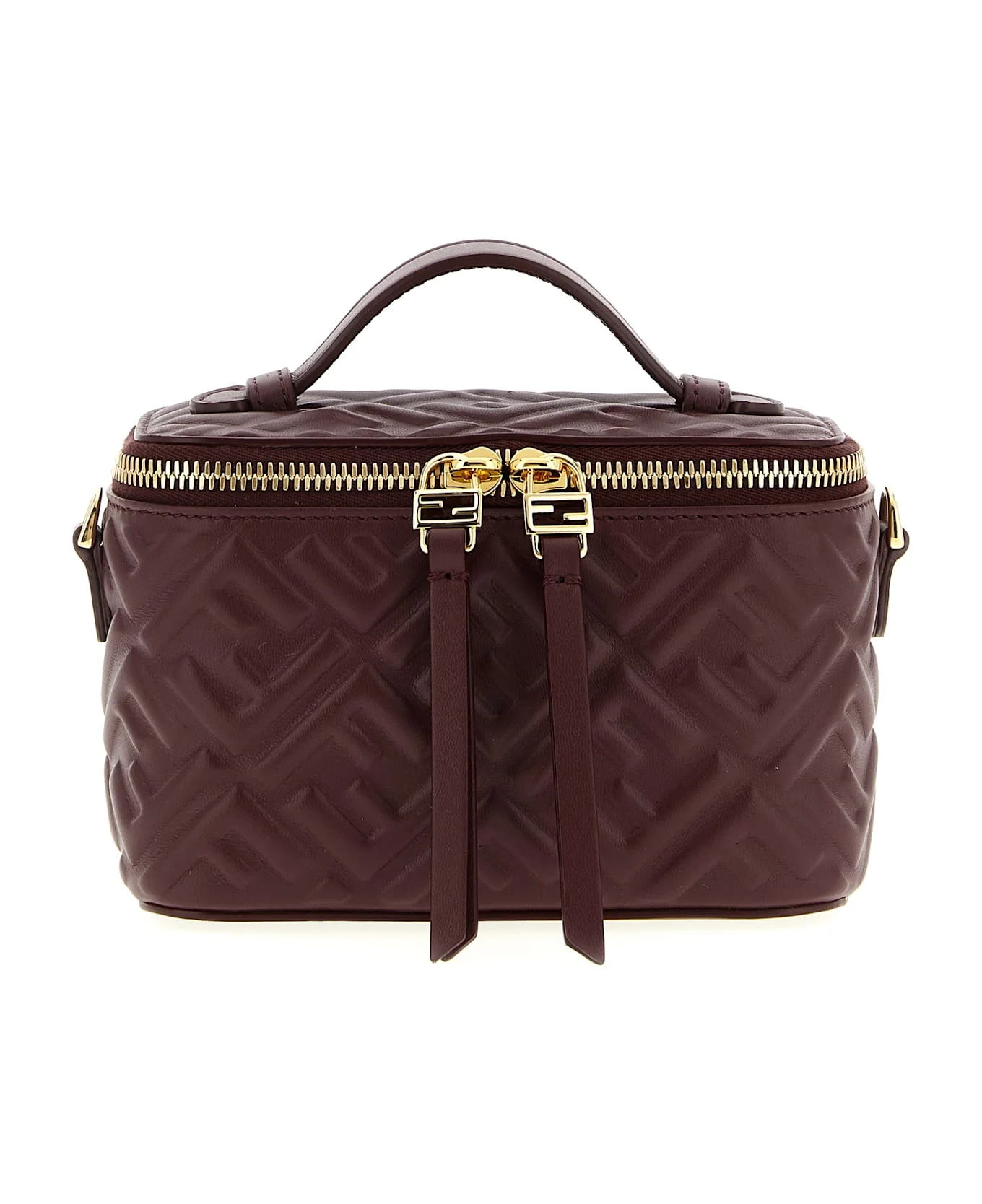 'Vanity' nappa crossbody bag with embossed 'FF' pattern, top case model, double slider zip closure with 'FF' metal details, fixed handle and removable leather and chain shoulder strap. Composition: 100% lamb leather (Ovis aries) Made in: Italy Color: Red Size and fit: - W 16 x H 11 x D 8 cm Model number: 8BS108AAJDF0YPU