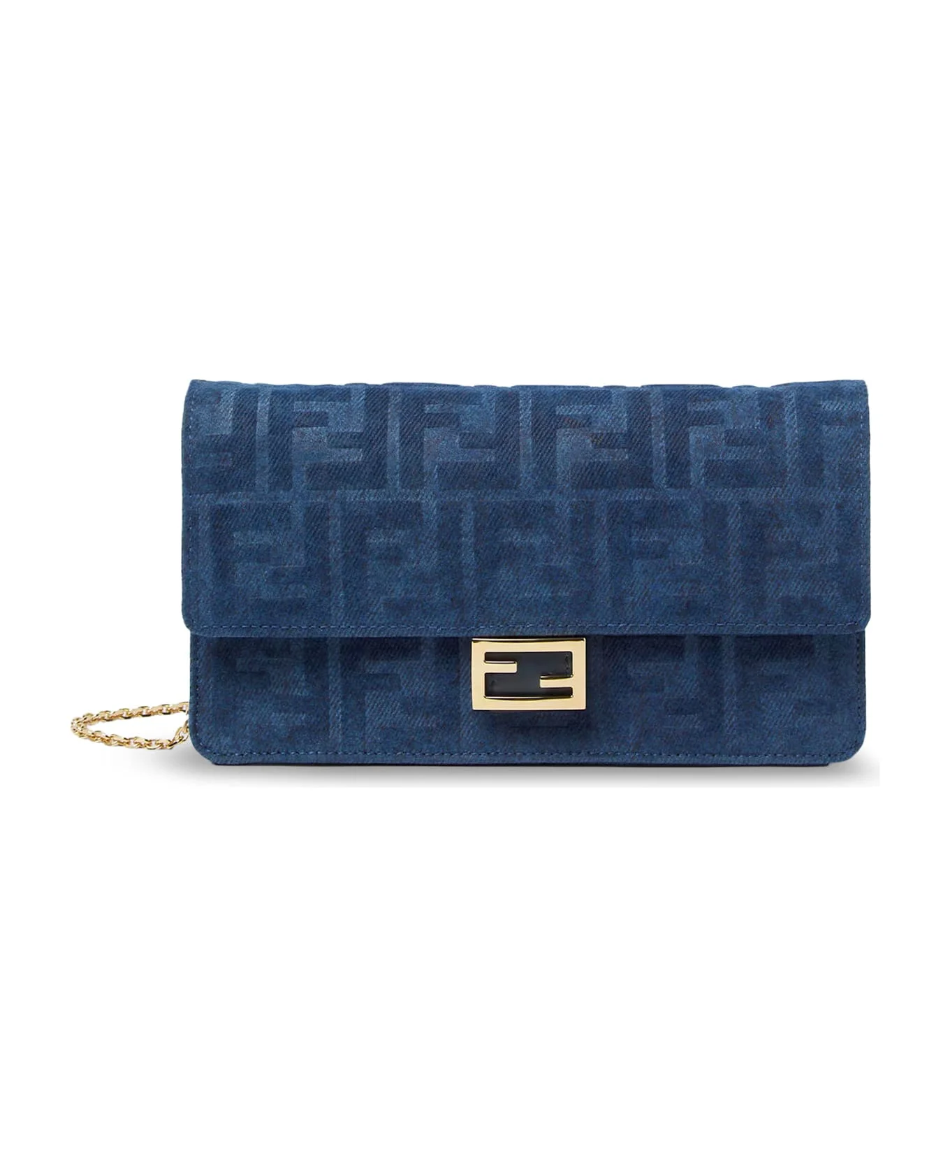 Wallet On Chain Baguette Shoulder Bag In Denim-effect Ff Corduroy