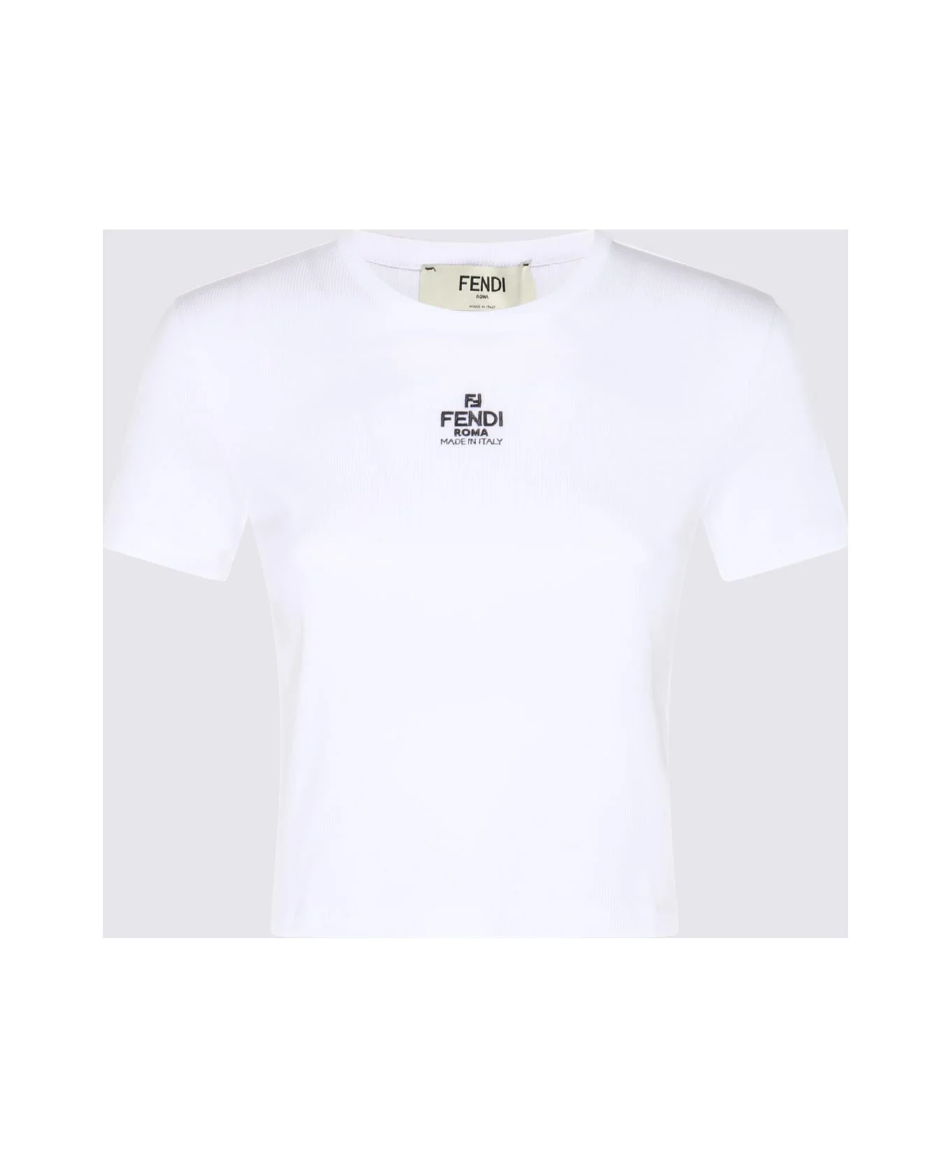 White cotton t-shirt from Fendi featuring short sleeves, round collar, frontal logo and crop length. Composition: _, 100% Co Made in: Italy Color: White Model number: FS8110ANQMF0ZNM