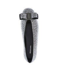 Ferragamo rhinestone ballet flats in black goat leather with tone-on-tone bow, silver metal engraved logo, all-over rhinestone detail, slip-on fit, leather sole. Composition: 100% Goat Leather Made in: Italy Color: BLACK/WHITE Model number: 01K5830785487