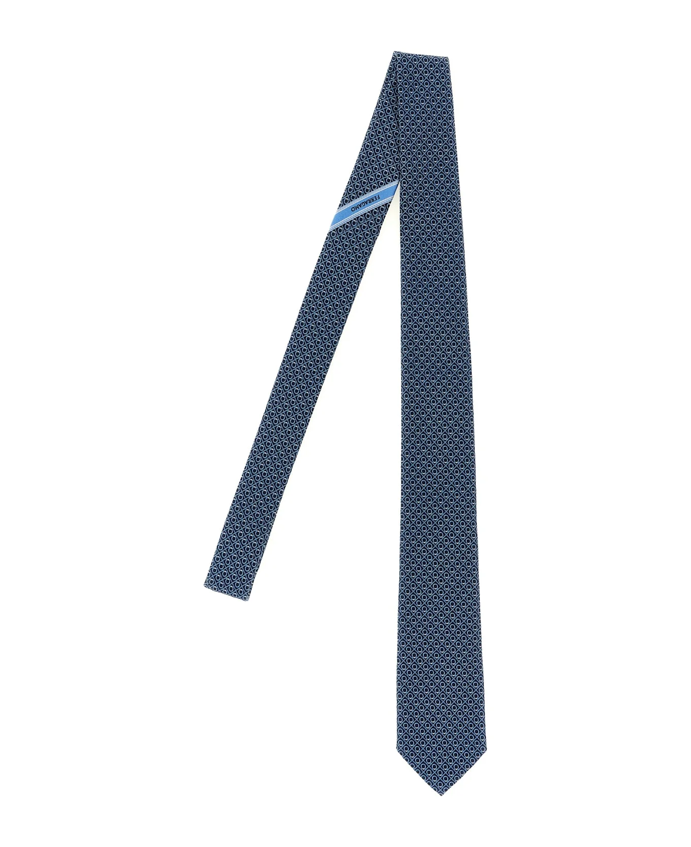 'Biella' silk tie with jacquard 'Gancini'. Composition: 100% silk Made in: Italy Color: Blue Size and fit: - Blade 7 cm Model number: 789251FBLUMEDIO