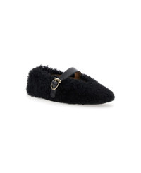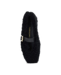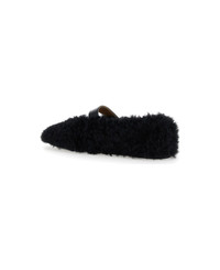 Black Ballerinas With Shearling Design And Buckle In Leather Woman