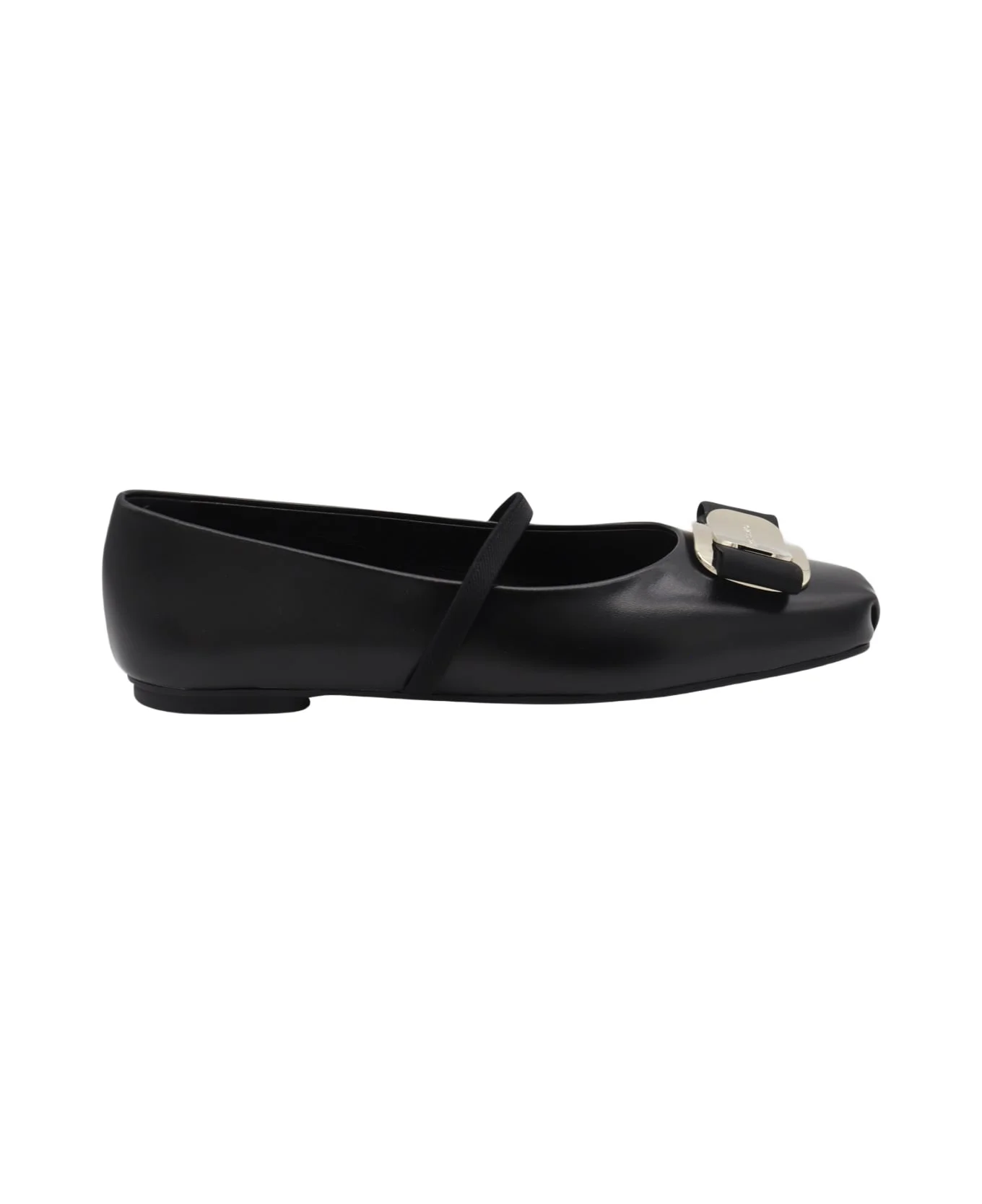 Black leather flats from Ferragamo featuring round toe, frontal bow, leather sole and silver hardware. Composition: _cover, 100% Le Sole, 100% Elastodiene Made in: Italy Color: Black Model number: 76886801H345005