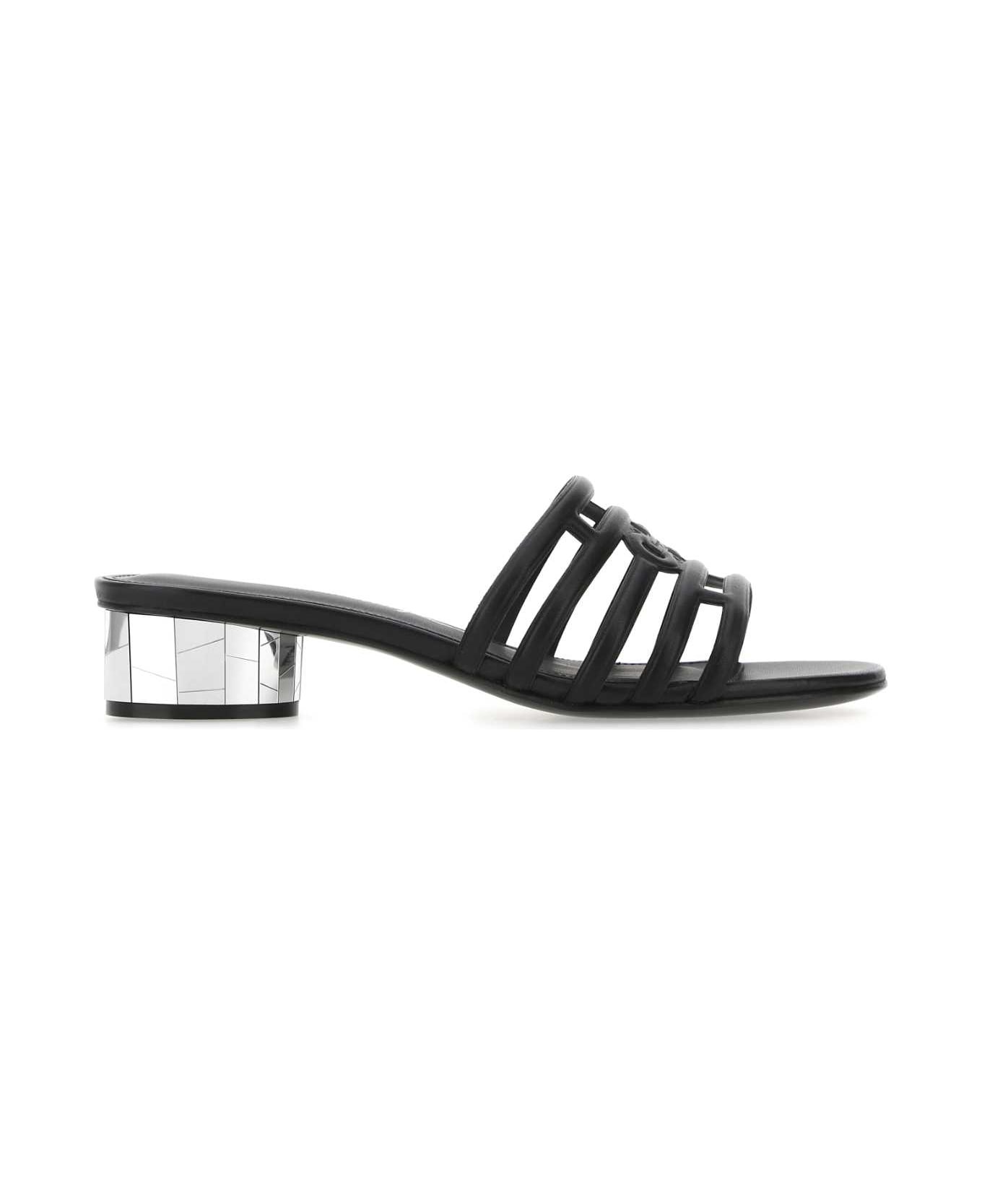 Black Nappa Leather Finn Mules from Ferragamo Made in: Italy Color: 001 Size and fit: - Heel height: 3 cm Model number: 01D212751059001