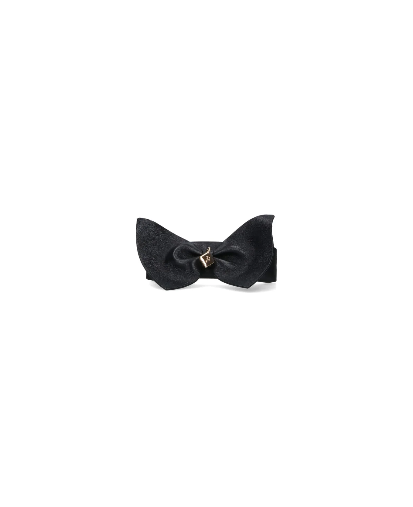 Ferragamo bow clasp in black lambskin with gold metal hardware, engraved "F" logo detail, back clip closure. Composition: 70% Lambskin, 20% Brass, 10% Plastic Made in: Italy Color: Black Model number: 786477001