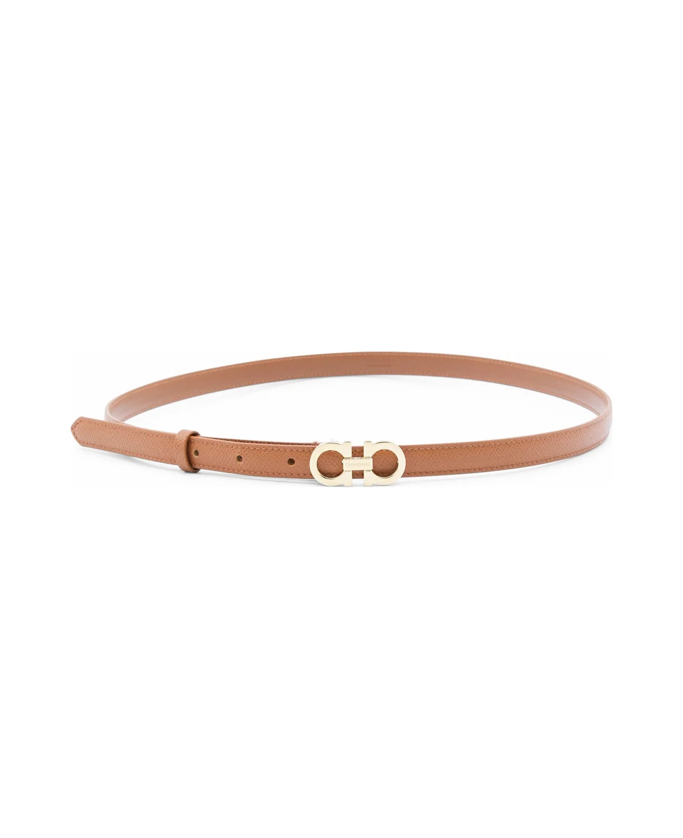 Brown leather Logo belt from Ferragamo featuring gold tone logo plaque at front, adjustable closure and mid height. Composition: _, 100% Le Made in: Italy Color: Natural Model number: 79015423B224274