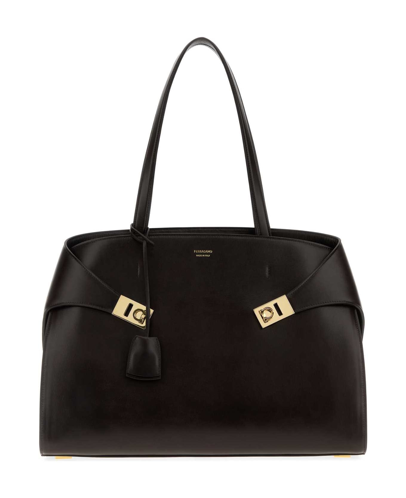 Dark Brown Hug Shopping Bag from Ferragamo Made in: Italy Color: BLACK Size and fit: - Width: 44 cm Height: 31 cm Depth: 13 cm Handle height: 27 cm Model number: 241813787661BLACK