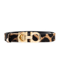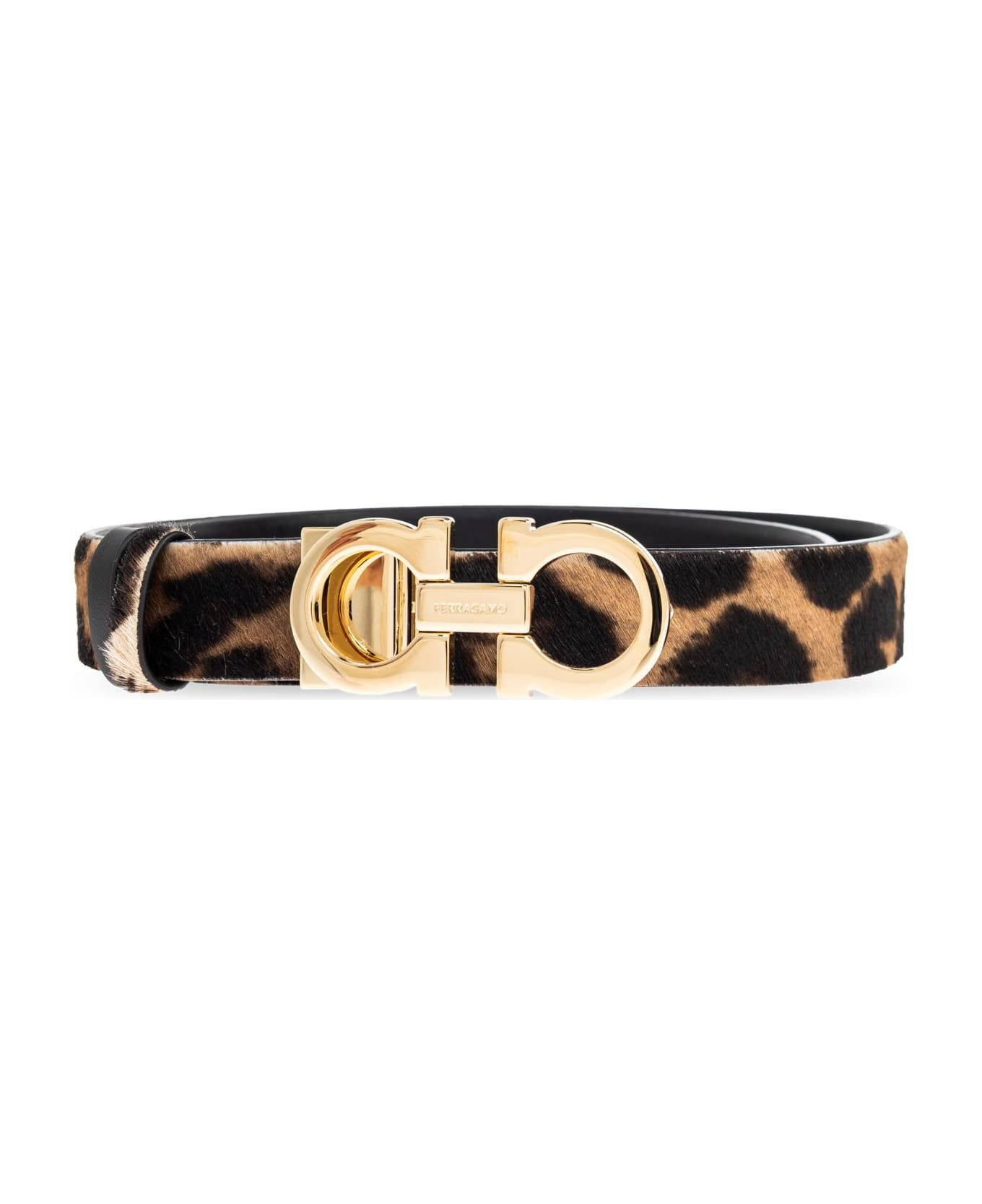 The Reversible Skinny Belt by FERRAGAMO is a testament to refined Italian artistry and timeless elegance. Meticulously crafted from sumptuous leather with a luxurious haircalf finish, its slender silhouette brings understated sophistication to both dresses and tailored pants. The striking animalier pattern, reminiscent of leopard spots, lends the belt a distinctive, opulent charm. A statement-making gold-tone buckle rectangular yet softly sculpted anchors the piece, featuring twin interlocking circles divided by a vertical accent, echoing FERRAGAMO's celebrated design codes. This versatile accessory encapsulates the house's heritage of excellence and elevated craftsmanship. Why choose this product? Exquisite, Italian-crafted luxury from FERRAGAMO Premium haircalf leather offering an irresistibly unique texture Distinctive animal print for standout sophistication Elegant, eye-catching gold buckle with signature detailing Perfectly skinny width for versatile styling options Composition: 100% Leather Made in: Italy Color: NEUTRALS/BLACK Size and fit: - width: 2,5cm Model number: 23A5670786264