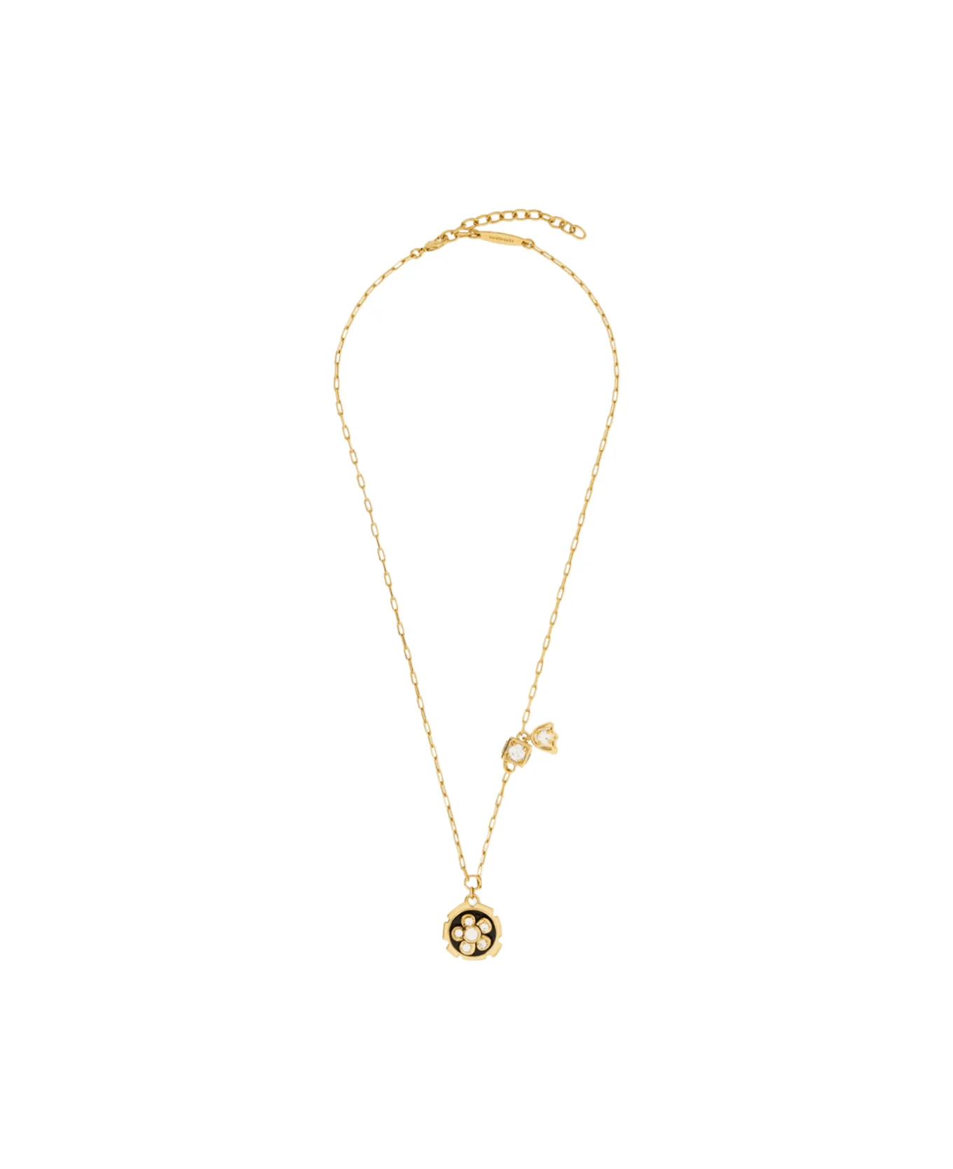 Ferragamo gold Fiore charm necklace, flower charm, hook Composition: 90% Brass, 5% Glass, 5% Enamel Made in: Italy Color: Golden Size and fit: - UNI SIZE Model number: 790710760938ORO/BLACK